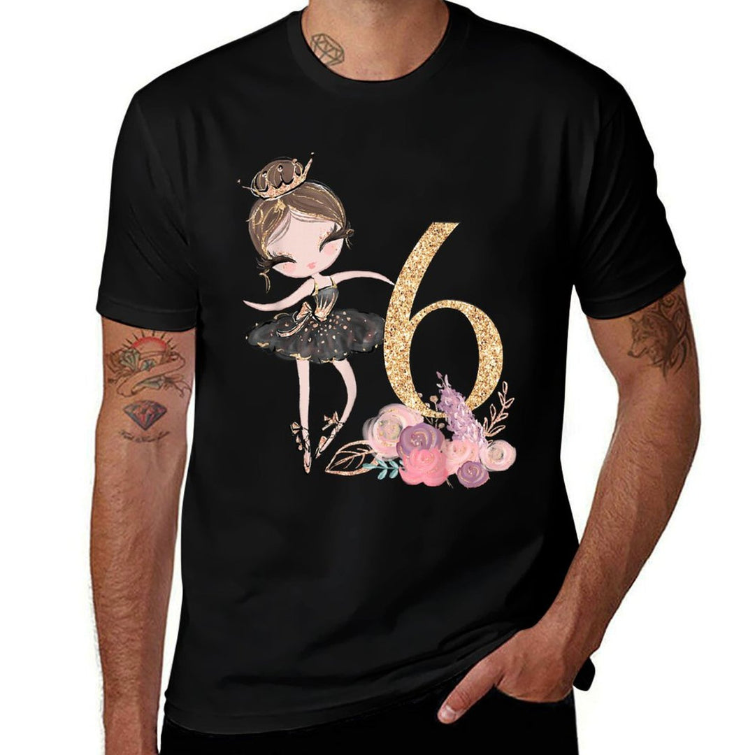 6th Birthday Ballerina Dancer Ballet Swan Tutu Girls Six Tagless Design T-Shirt