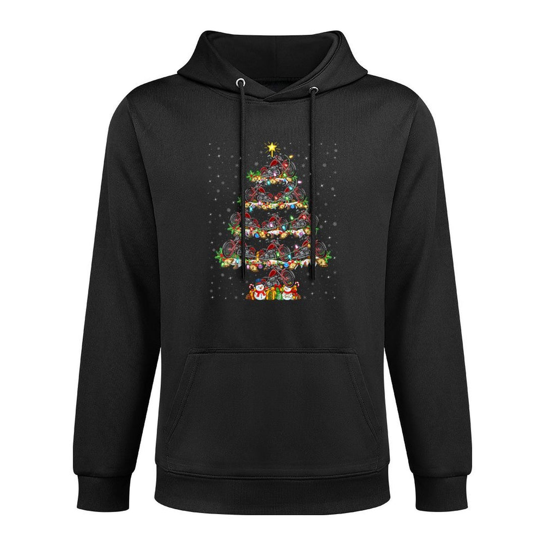 Womens Motorcycle Lover Xmas Lights Santa Motorcycle Christmas Tree Breathable Fabric Hoodie