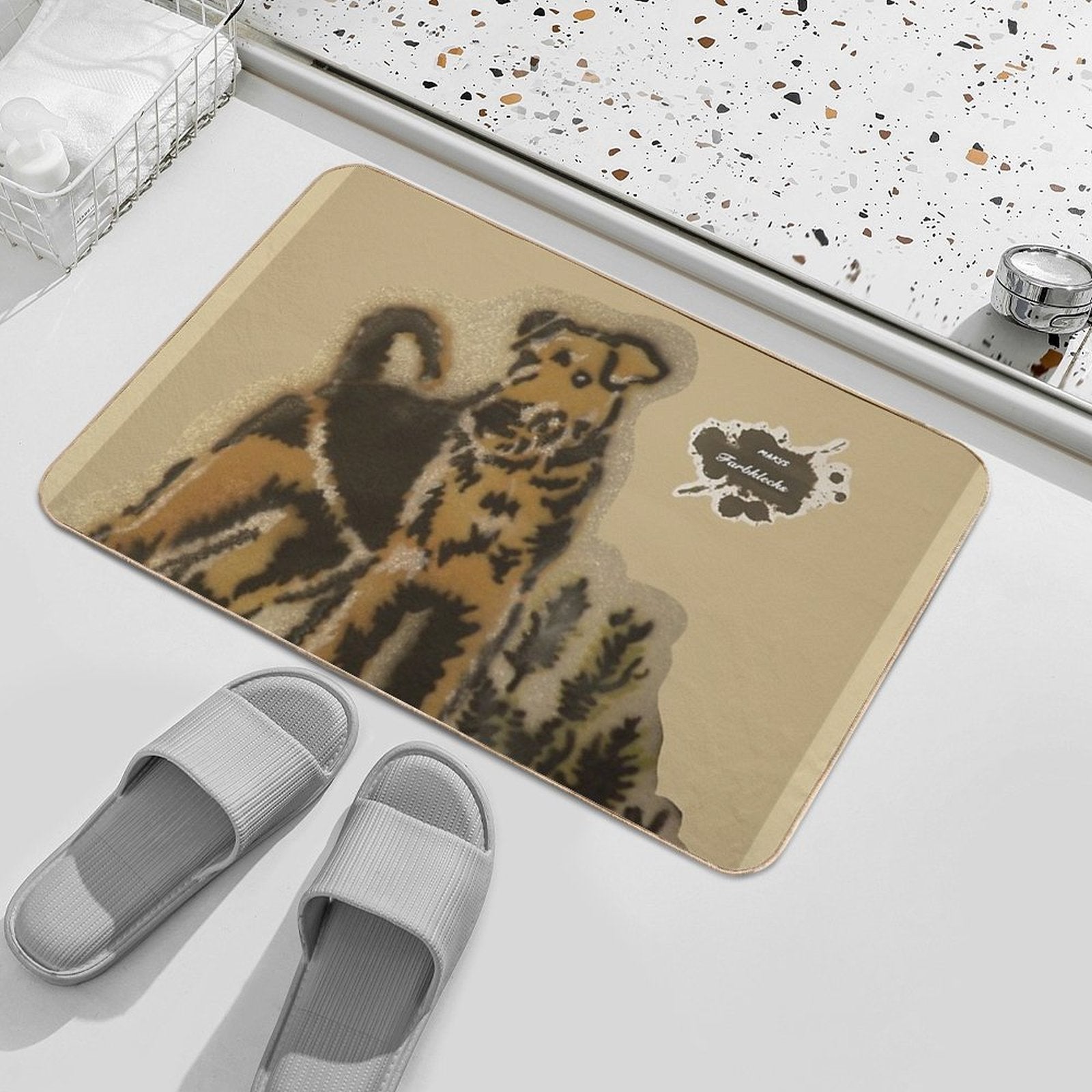 • Rapid-drying flannel soaks up water 3x faster than standard mats, preventing puddles in An Airedale Terrier Stands in The Meadow bathrooms or poolside areas.