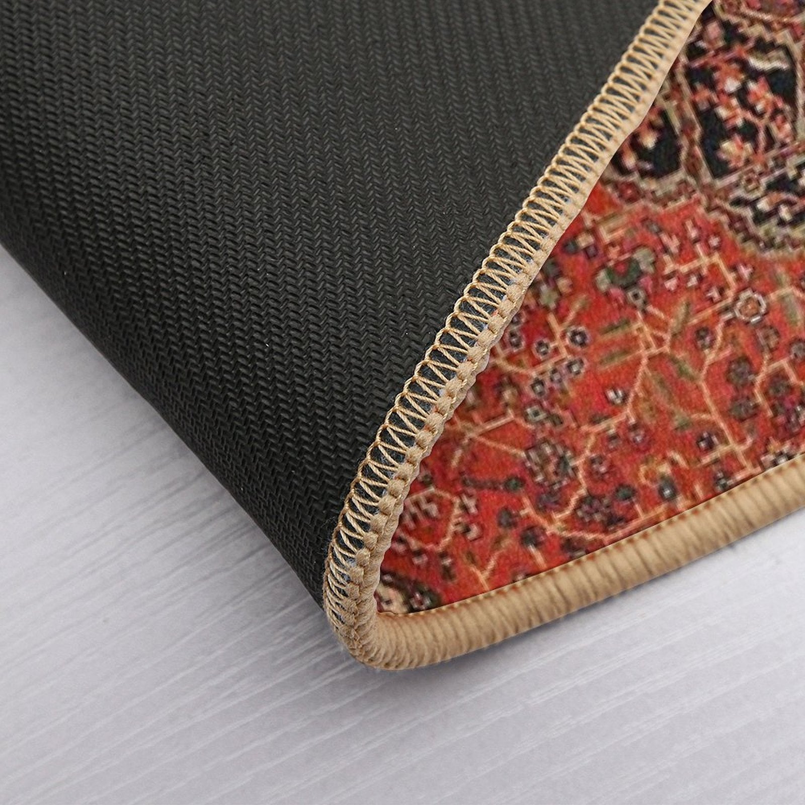 - Non-slip rubber backing grips floors securely, ideal for Antique Persian Sarouk Farahan Rug Print Mat placements on tiles, wood, or marble.