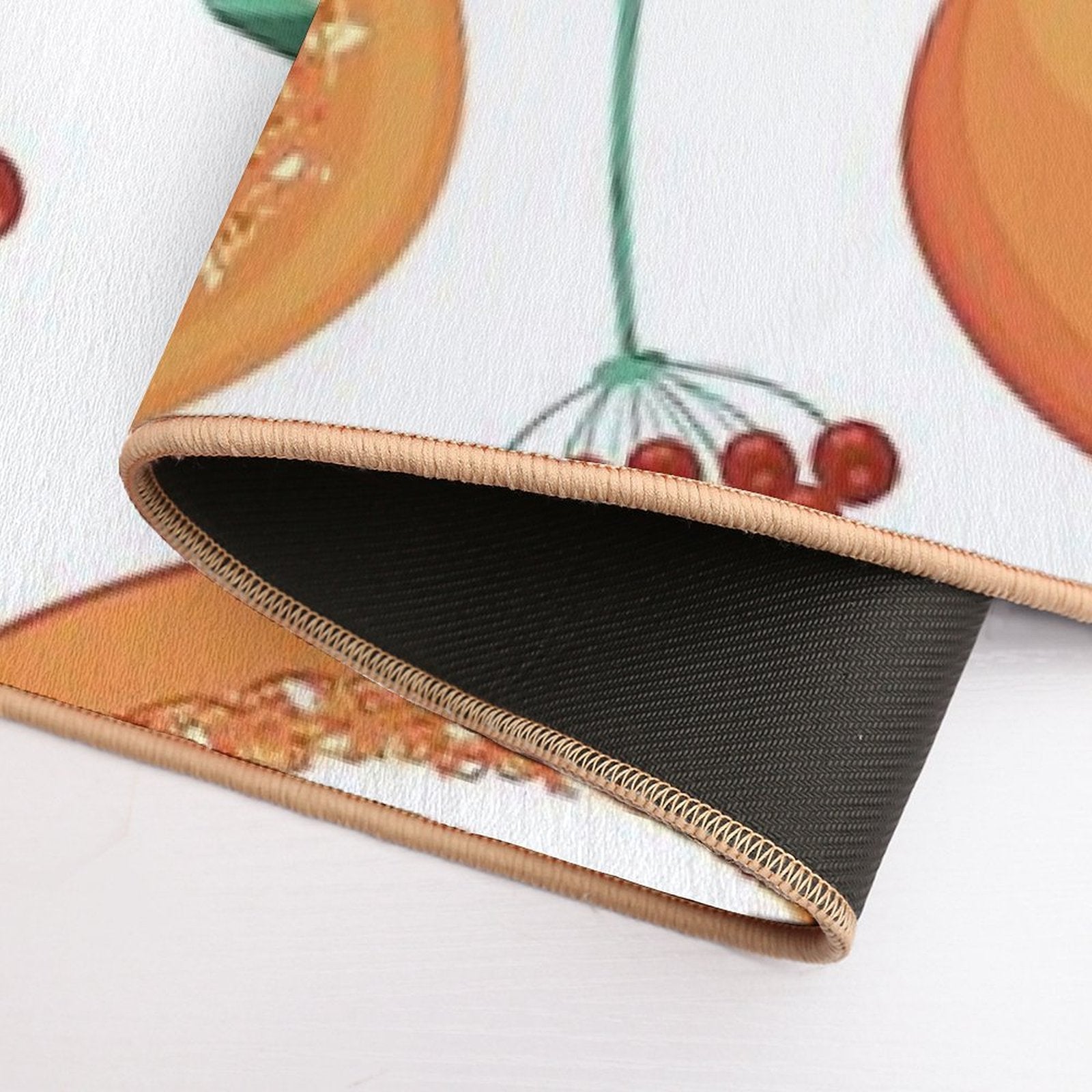 - Non-slip rubber backing grips floors securely, ideal for Autumn-Themed Seamless Pattern Featuring Pumpkins, Viburnum Twigs, Teapot, Tea Cup And Plate with Rose Hips Mat placements on tiles, wood, or marble.