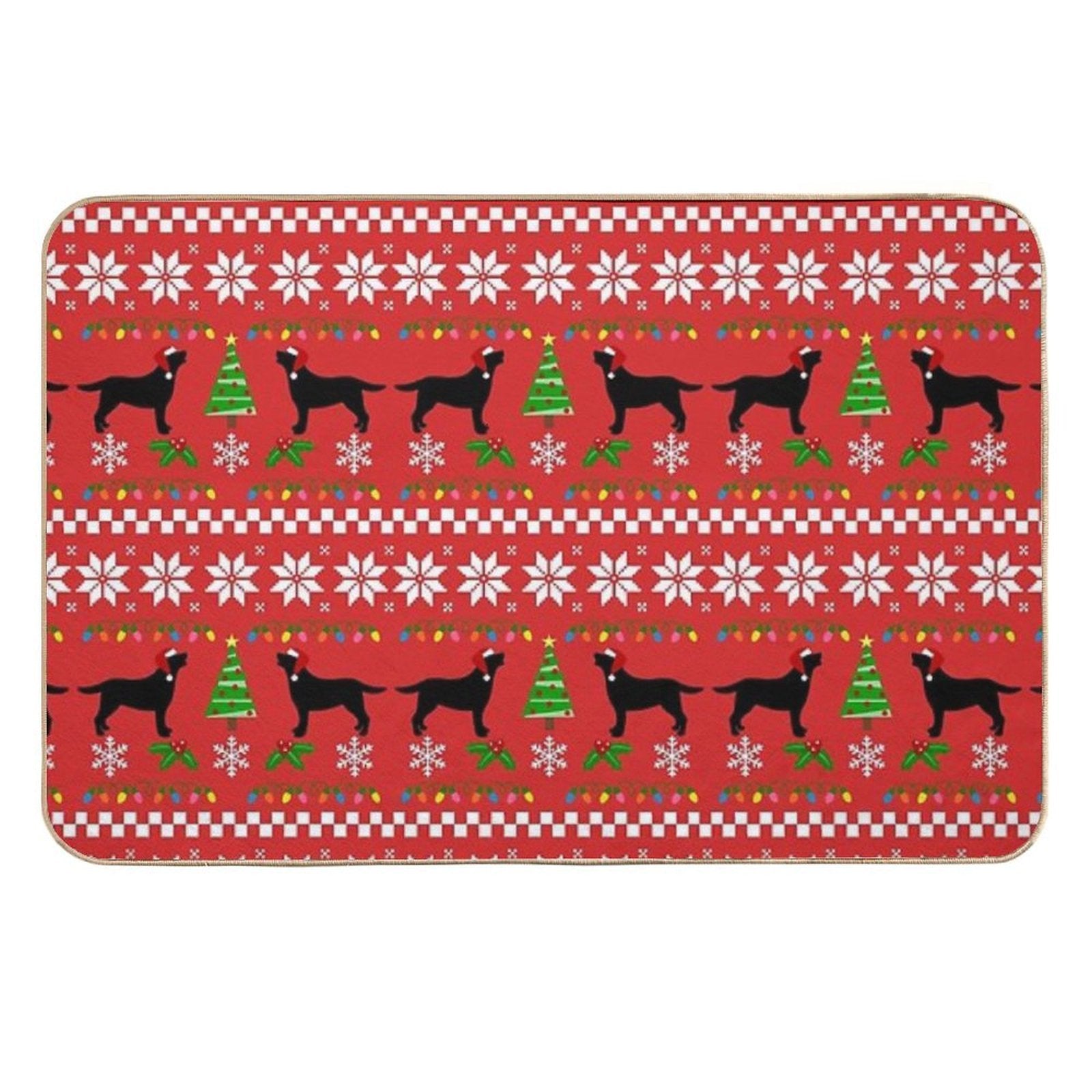 - Non-slip rubber backing grips floors securely, ideal for Black Labrador Happy Christmas Sweater Pattern Mat placements on tiles, wood, or marble.