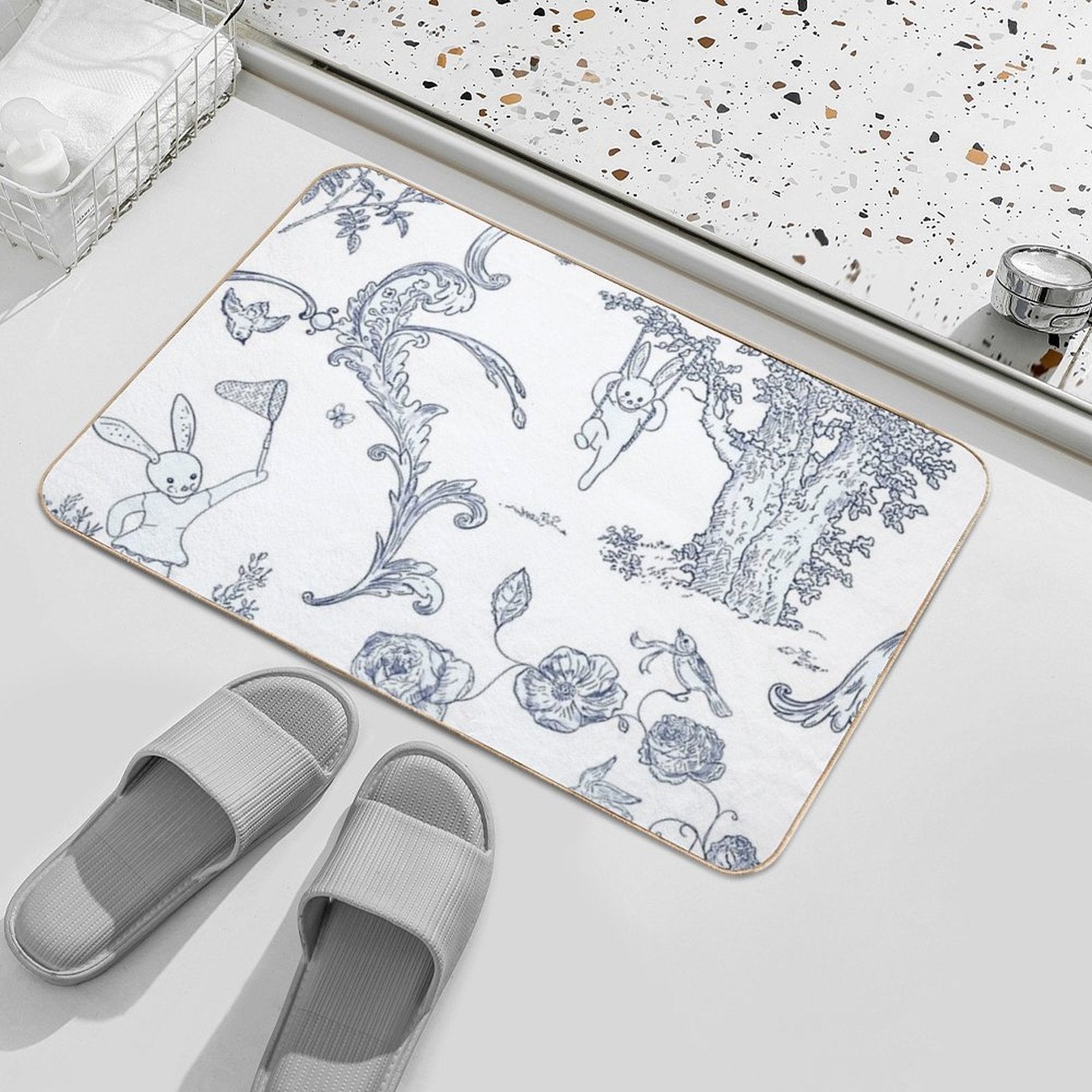 Blue Bunny Toile   Blue Toile   Blue Bunny Toile  Blue Toile Print  Easy Maintenance Bath Mat