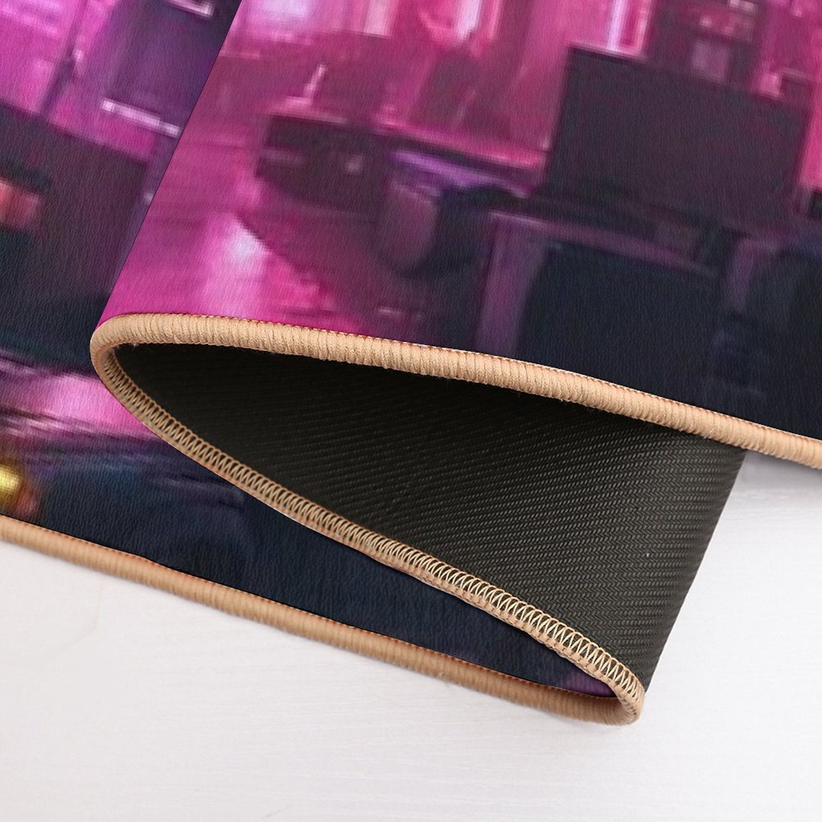 • Non-slip rubber backing grips floors securely, ideal for Cyberpunk Night City Art #1 Mat placements on tiles, wood, or marble.