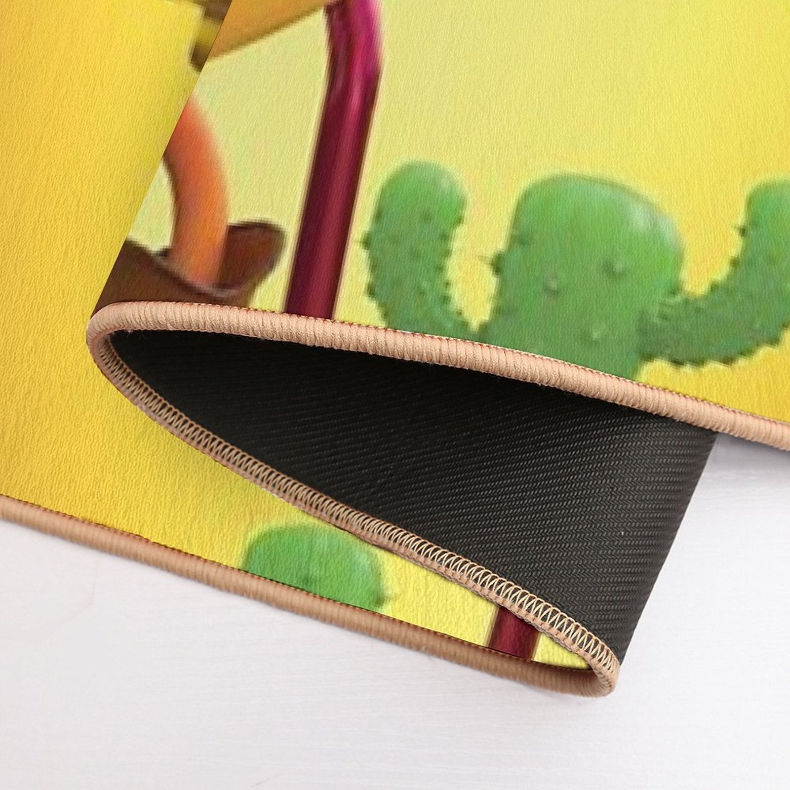 • Non-slip rubber backing grips floors securely, ideal for Daisy Donut Goes West Mat placements on tiles, wood, or marble.