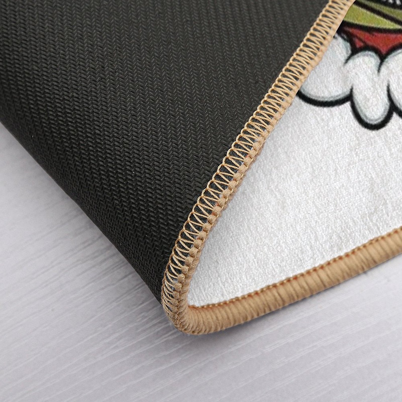 • Non-slip rubber backing grips floors securely, ideal for Evill Grinchs Santa Christmas Candy Cane Funny Creepy Holiday Mat placements on tiles, wood, or marble.