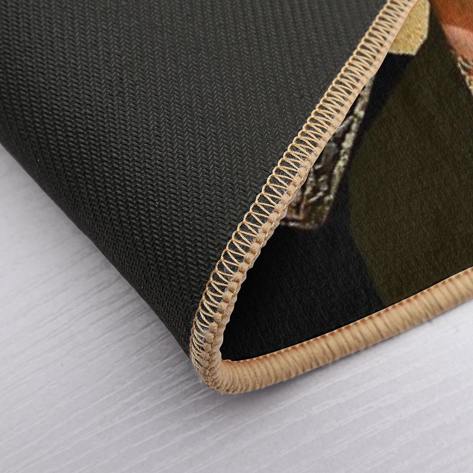- Non-slip rubber backing grips floors securely, ideal for Frida Kahlo Portrait Color, Flowers And Sacred Heart, Black Background Mat placements on tiles, wood, or marble.