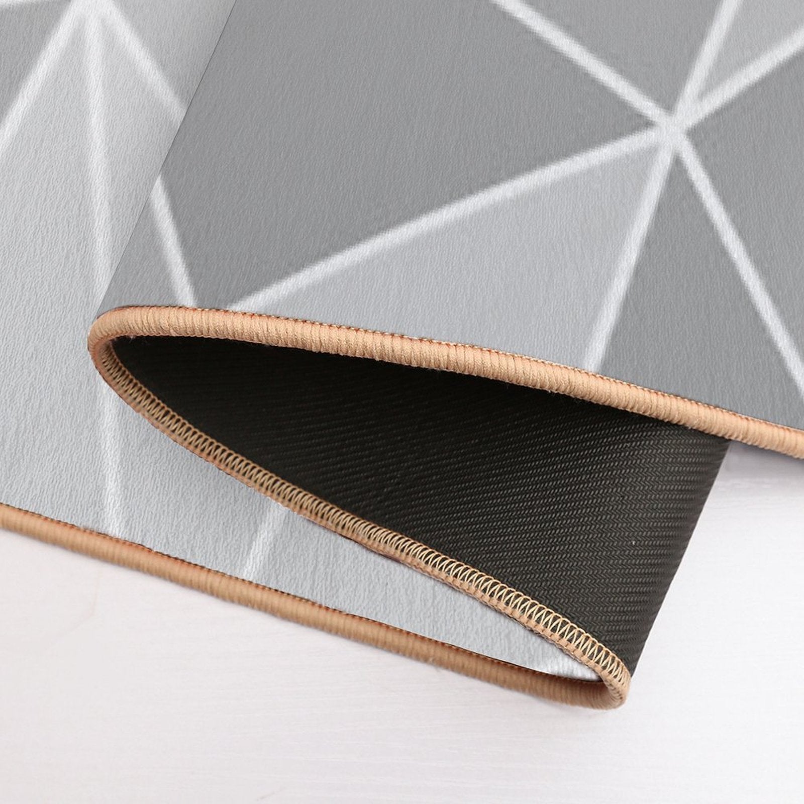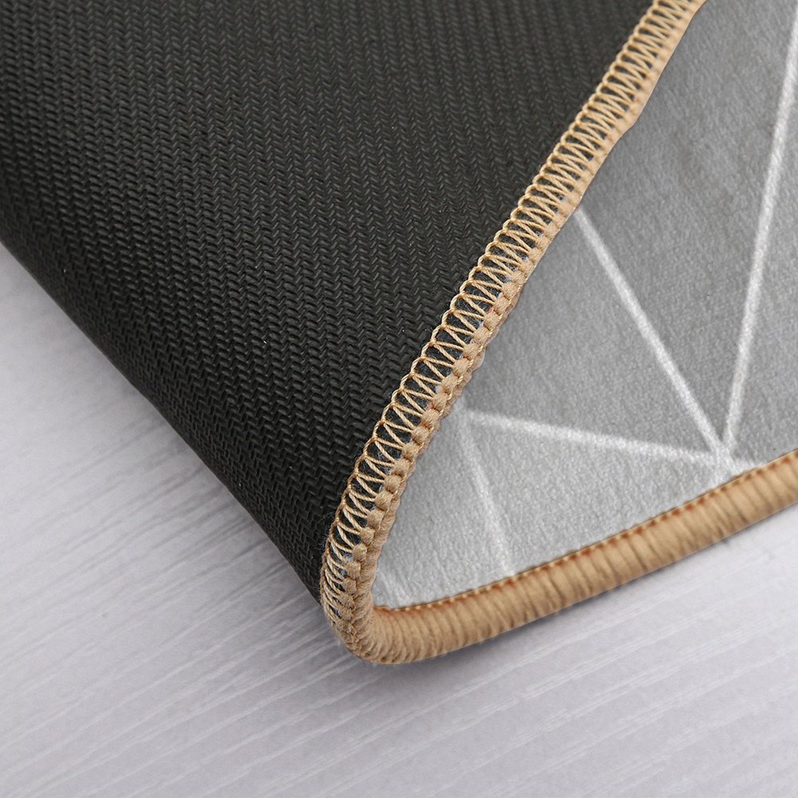 - Non-slip rubber backing grips floors securely, ideal for Geo Pattern (Silver Sand And White) Mat placements on tiles, wood, or marble.