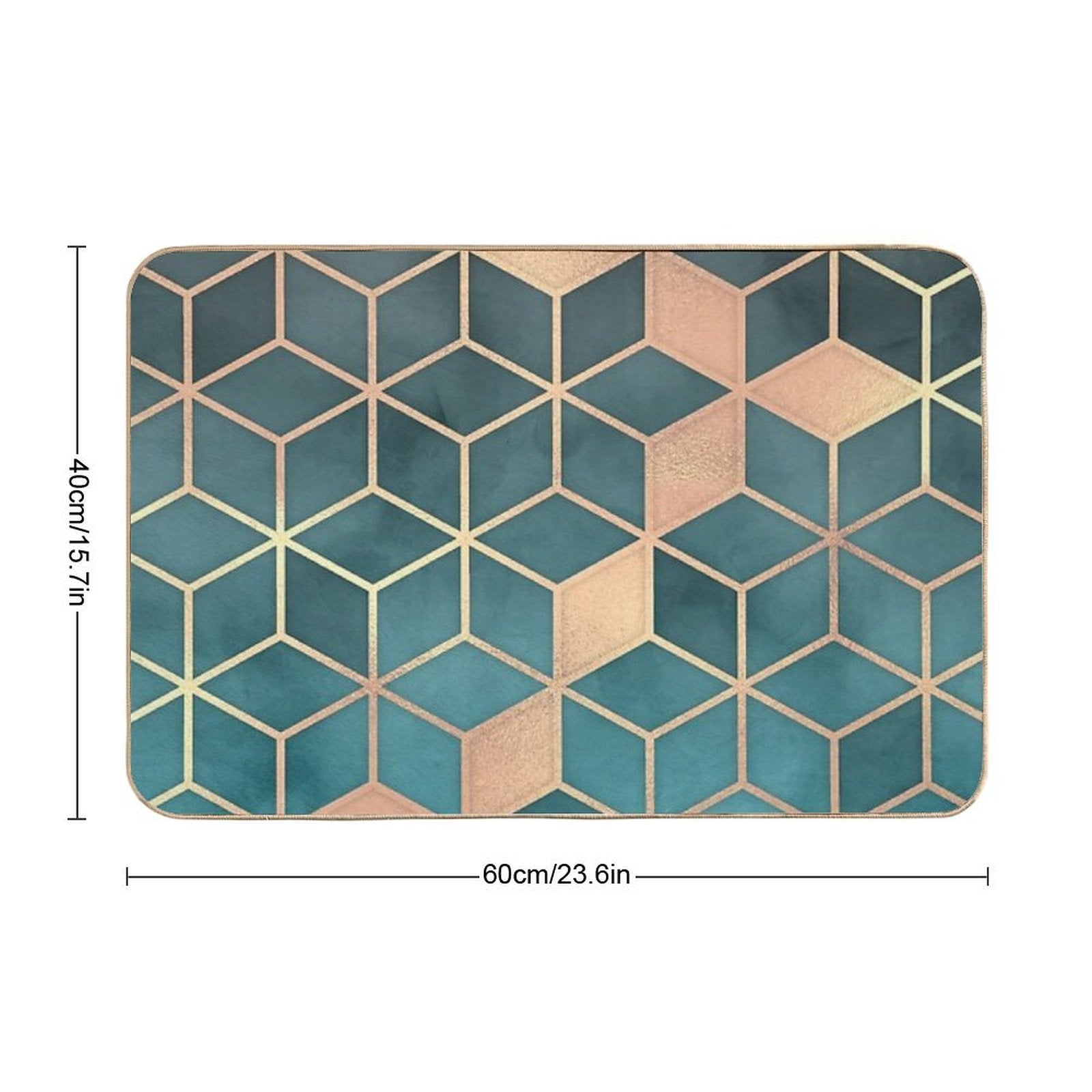 - Non-slip rubber backing grips floors securely, ideal for Gold Turquoise Black Gradient Cube Mat placements on tiles, wood, or marble.