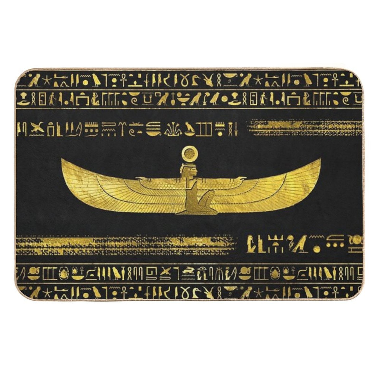 - Use as a vanity rug, guest suite accent, or mudroom defender – the Golden Egyptian God Ornament on Black Leather Mat adapts to any space.