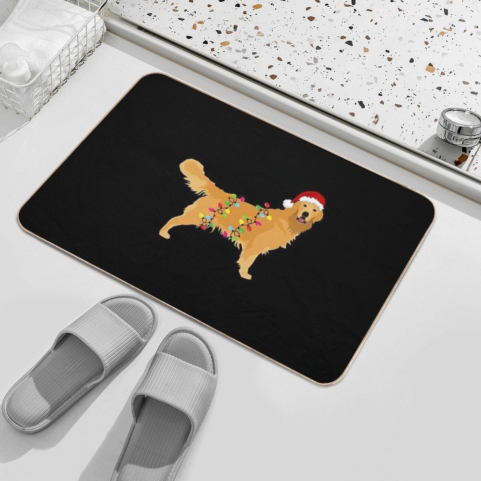 Golden Retriever Holiday Christmas Light - Golden Retriever Christmas in Santa Hat Holiday Santa Dog Non-Slip Bath Mat