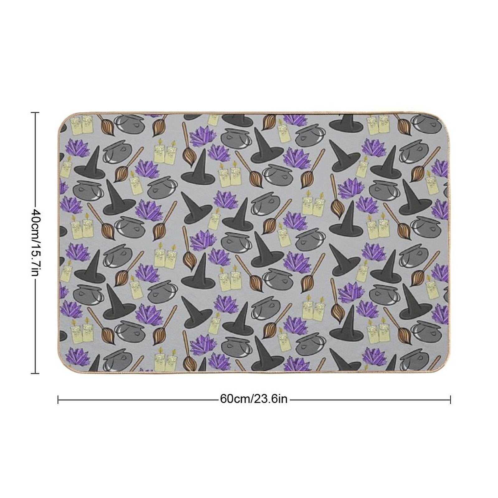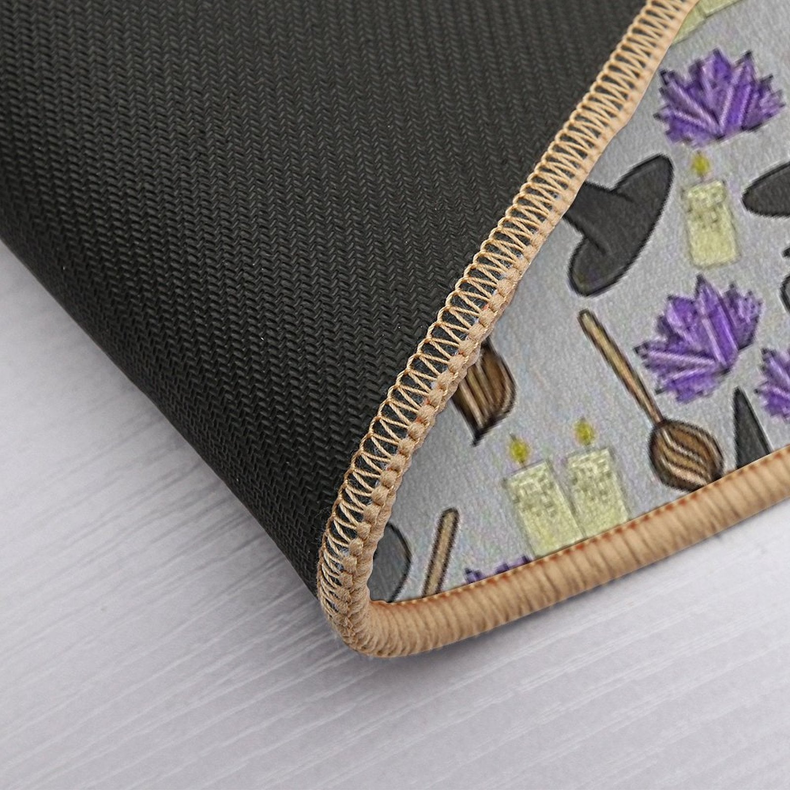 - Non-slip rubber backing grips floors securely, ideal for Hand Drawn Spooky Cauldrons,Broomsticks,Candles, And Witches Hat Cartoon Doodles Pattern, Made by EndlessEmporium Mat placements on tiles, wood, or marble.