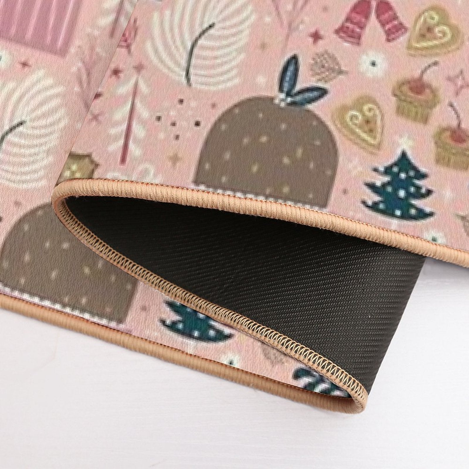 • Non-slip rubber backing grips floors securely, ideal for Holiday Delights Mat placements on tiles, wood, or marble.