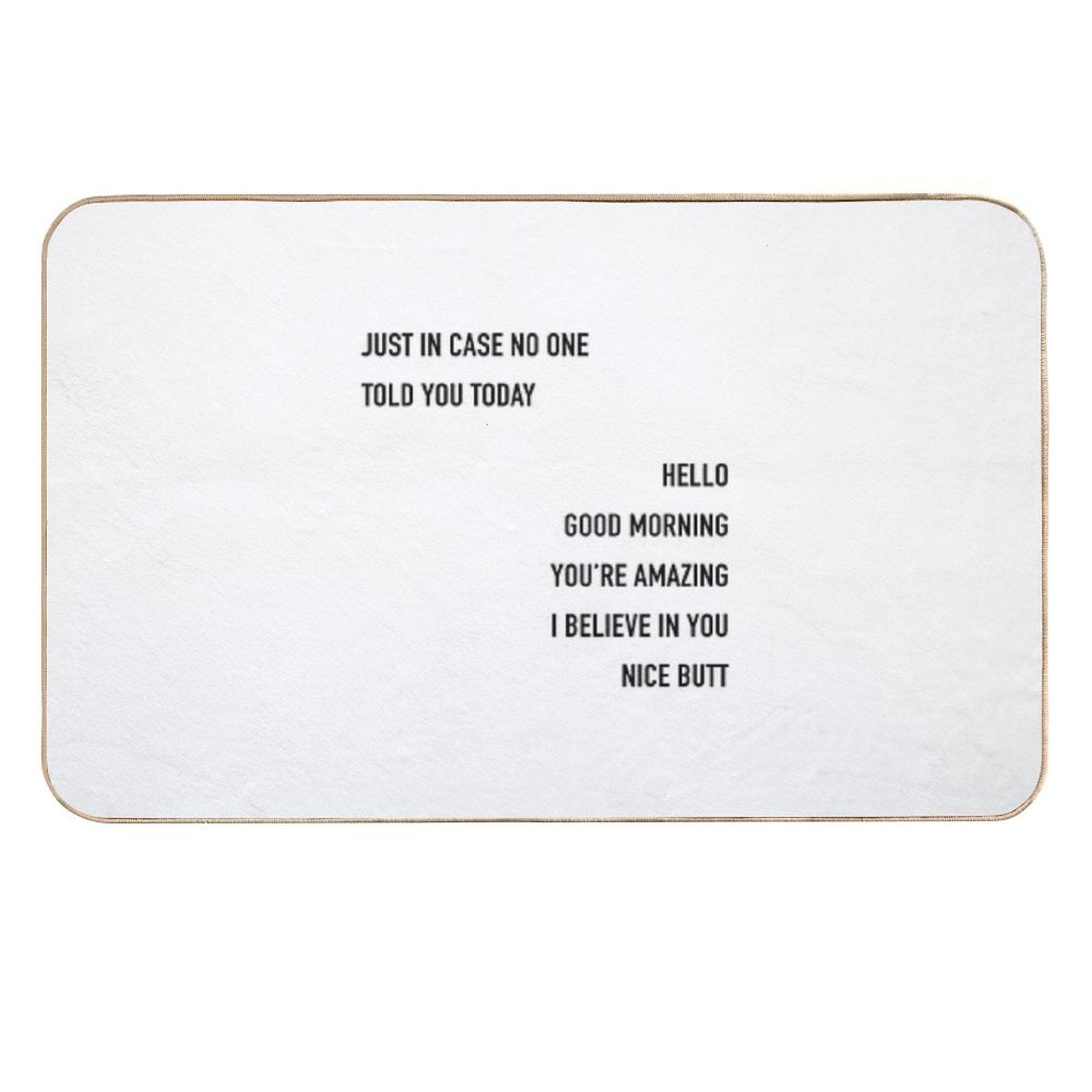 - Use as a vanity rug, guest suite accent, or mudroom defender – the Just In Case No One Told You Today Hello Good Morning You're Amazing I Beleive In You Nice Butt Mat adapts to any space.