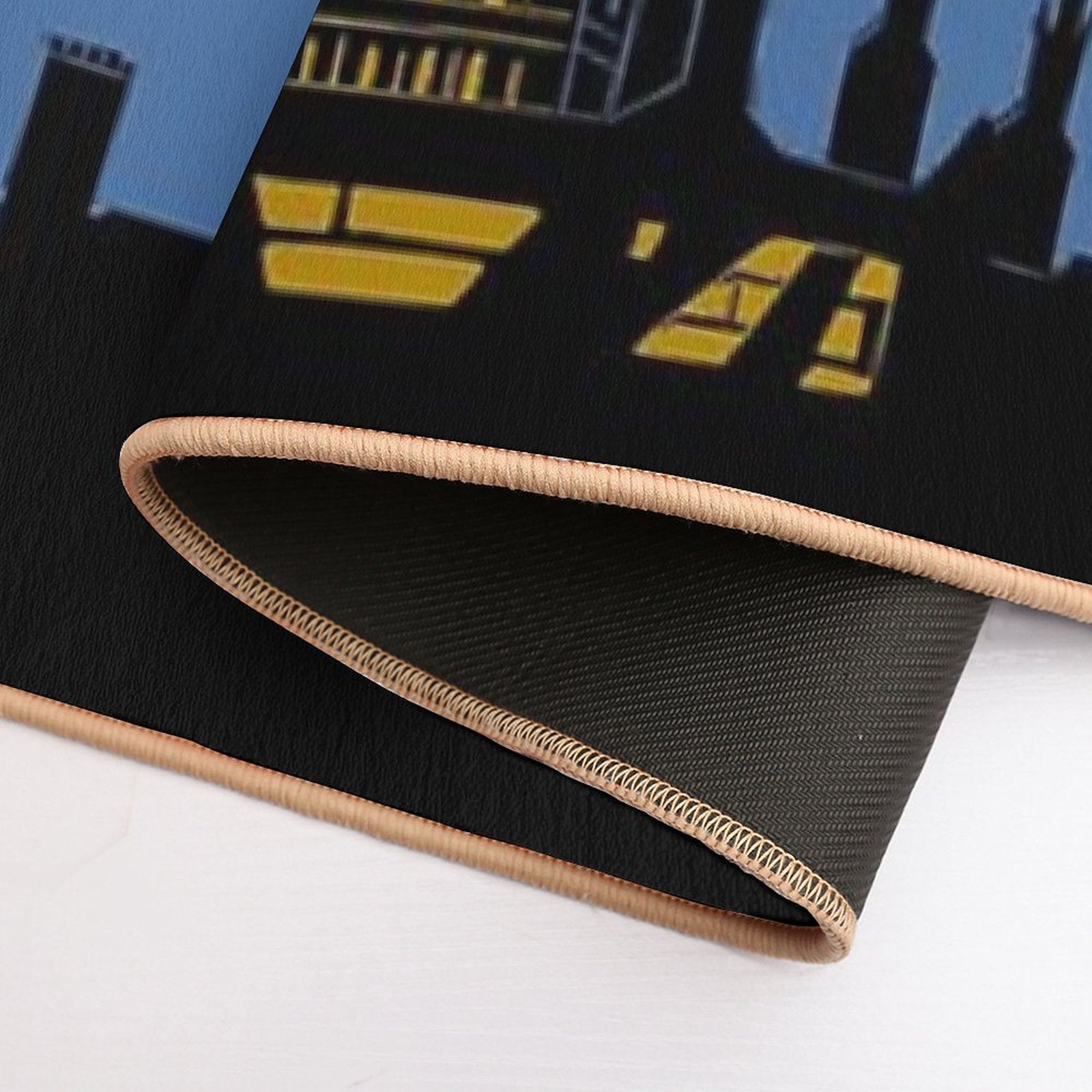 - Non-slip rubber backing grips floors securely, ideal for Mary Poppins And Big Ben Linocut Silhouette Print in Black, Blue And Gold Mat placements on tiles, wood, or marble.