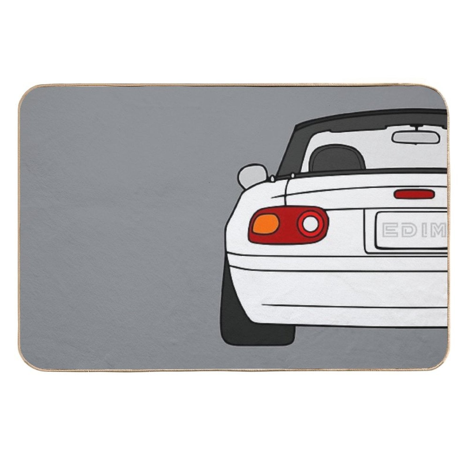 Mazda Miata MX-5 Rearview White Color Repositionable Bath Mat