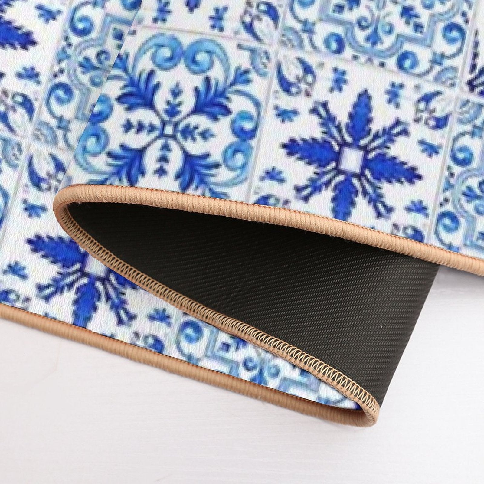 - Non-slip rubber backing grips floors securely, ideal for Mediterranean Mosaic Tiles Azulejo Mat placements on tiles, wood, or marble.