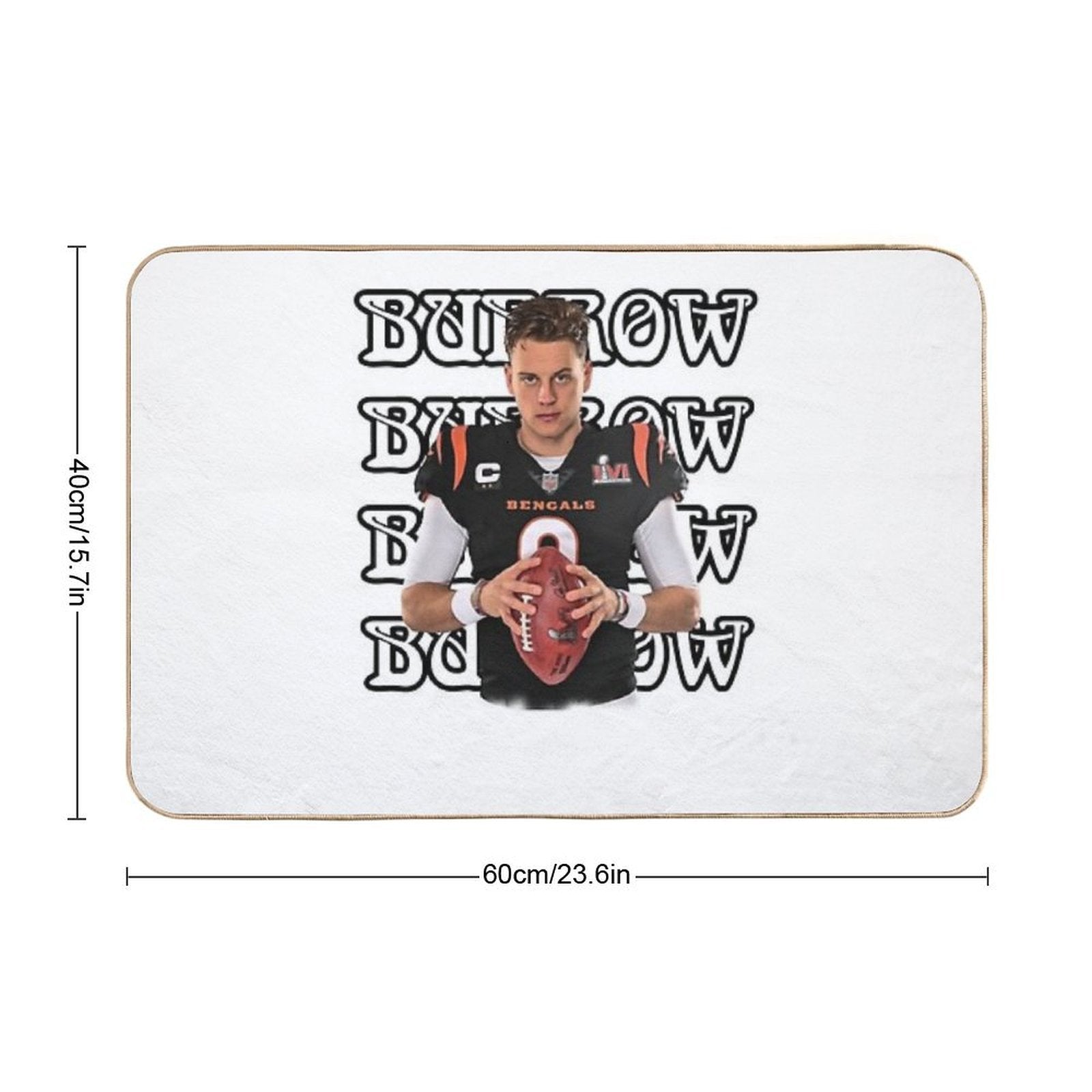 • Non-slip rubber backing grips floors securely, ideal for Natural Soccer League Overcome Yourself Joe Burrow Vintage Mat placements on tiles, wood, or marble.