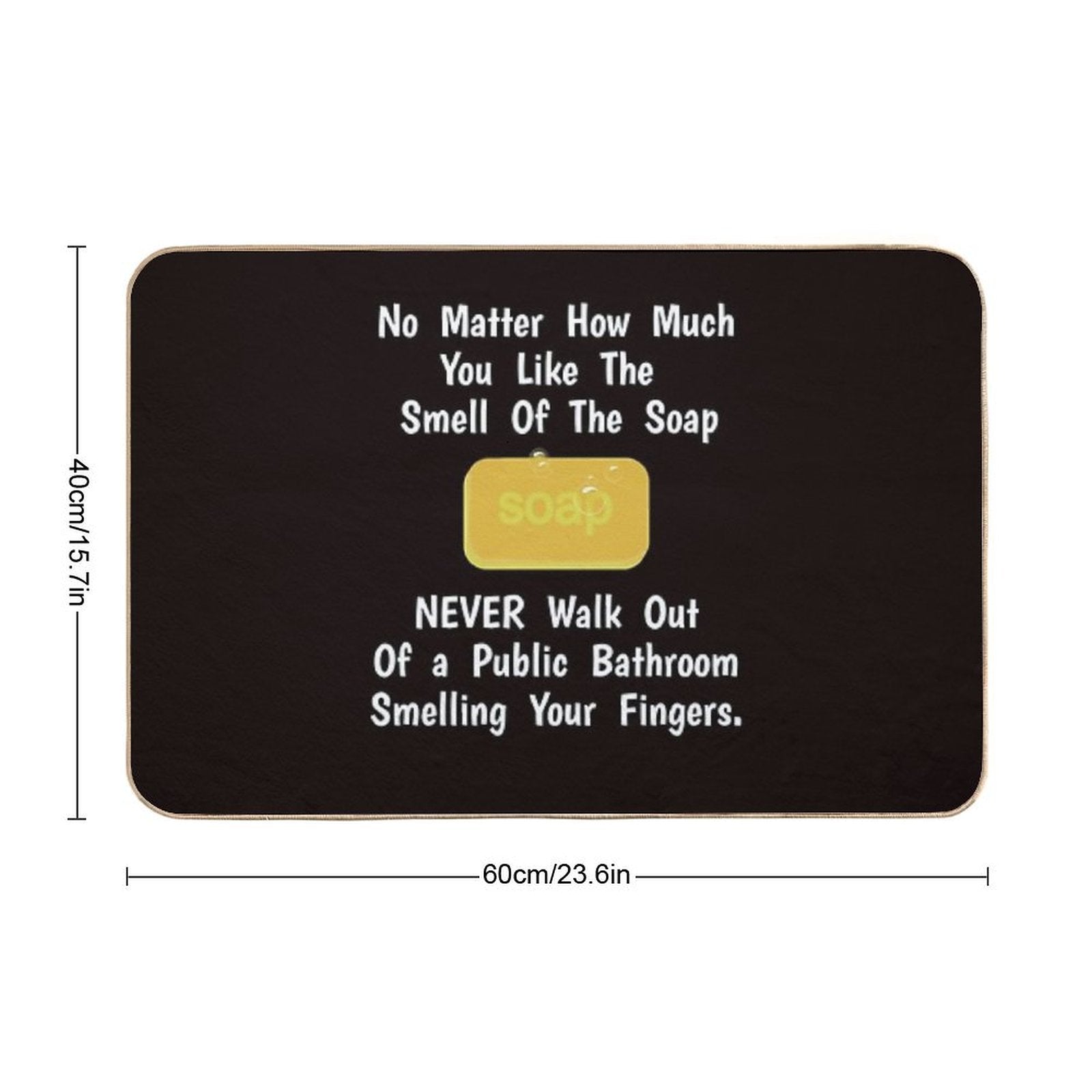 - Non-slip rubber backing grips floors securely, ideal for No Matter How Much You Like Soap.. Don't Smell Your Fingers Mat placements on tiles, wood, or marble.