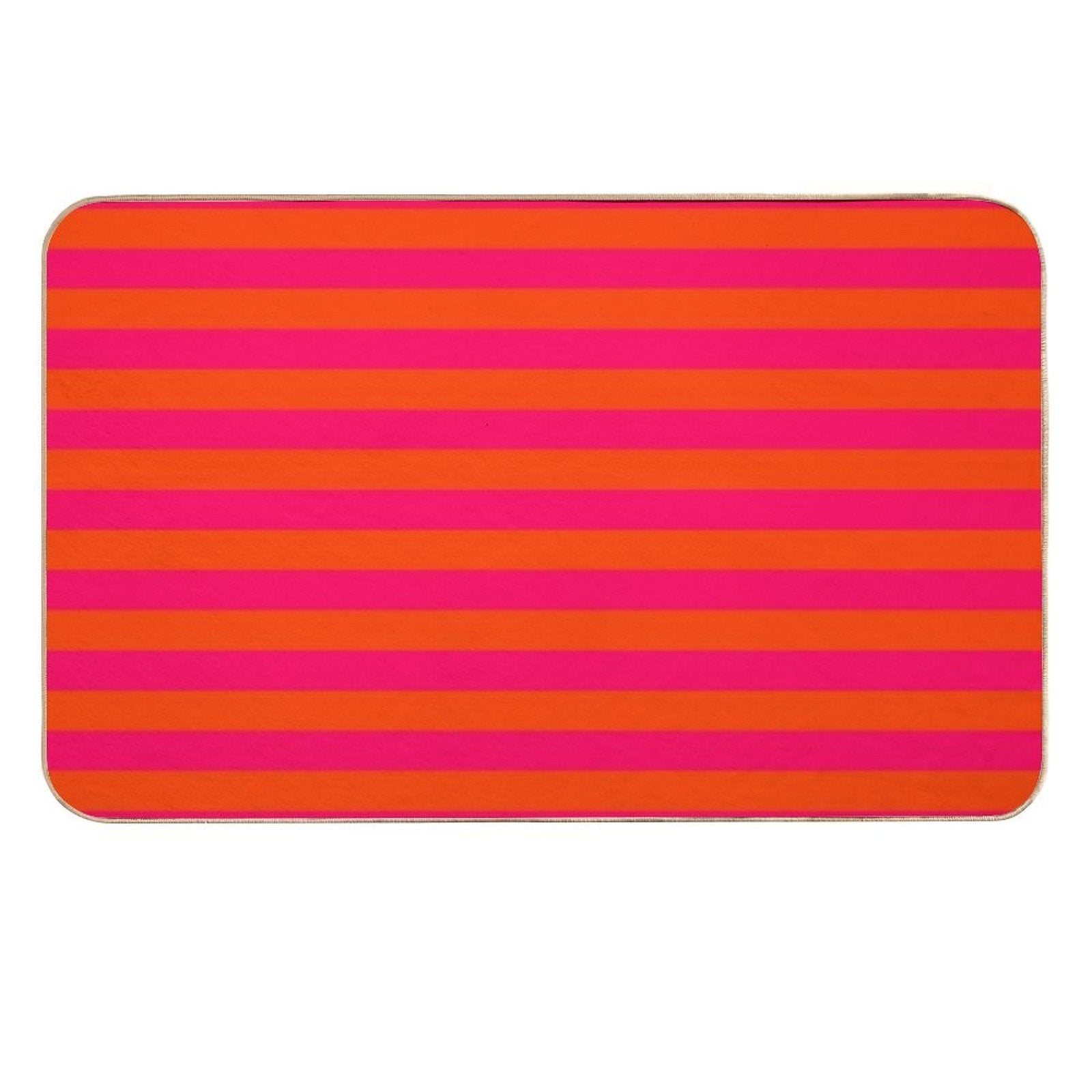 • Rapid-drying flannel soaks up water 3x faster than standard mats, preventing puddles in Orange Pop And Hot Neon Pink Horizontal Stripes bathrooms or poolside areas.