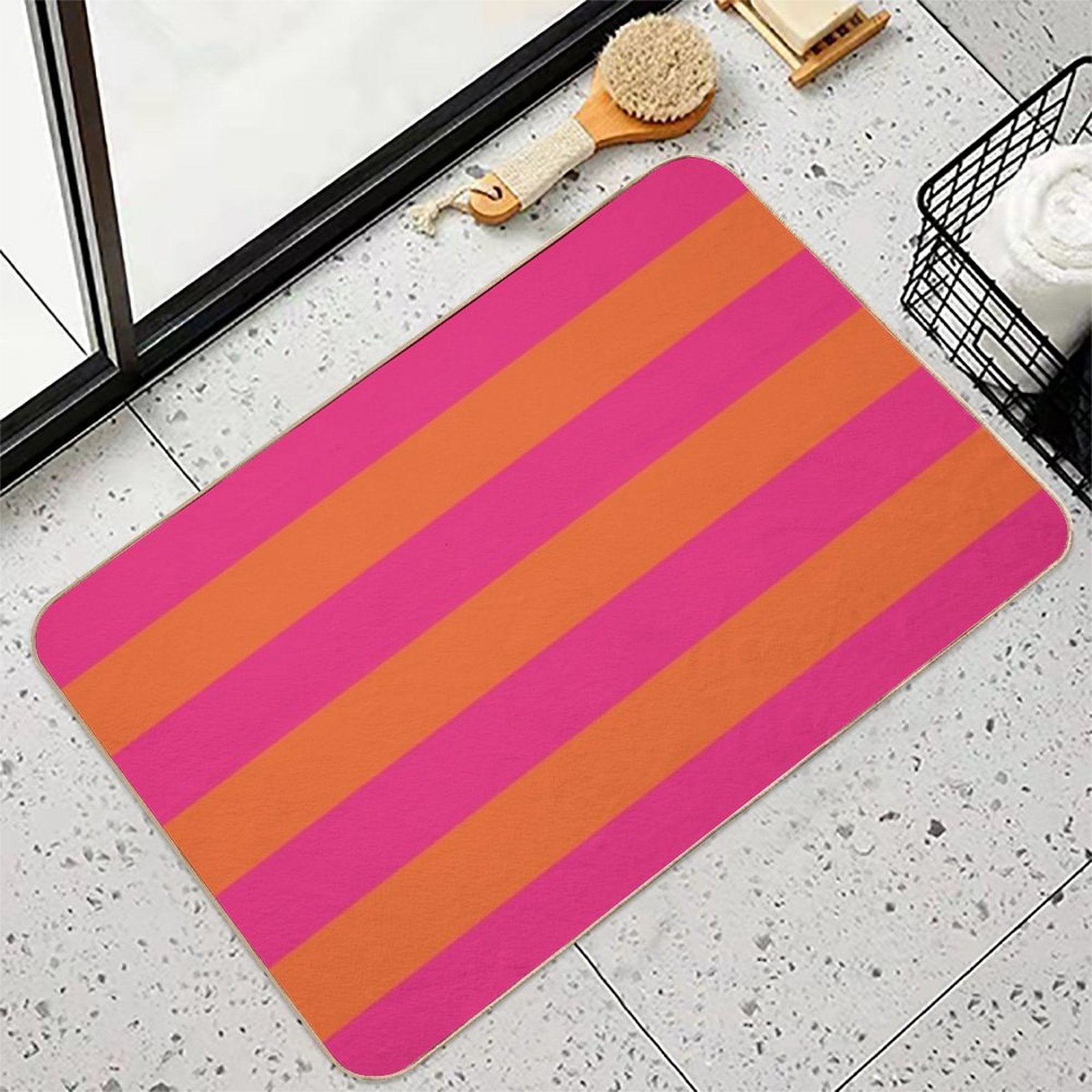 Orange Pop And Hot Neon Pink Horizontal Stripes Long-Lasting Bath Mat