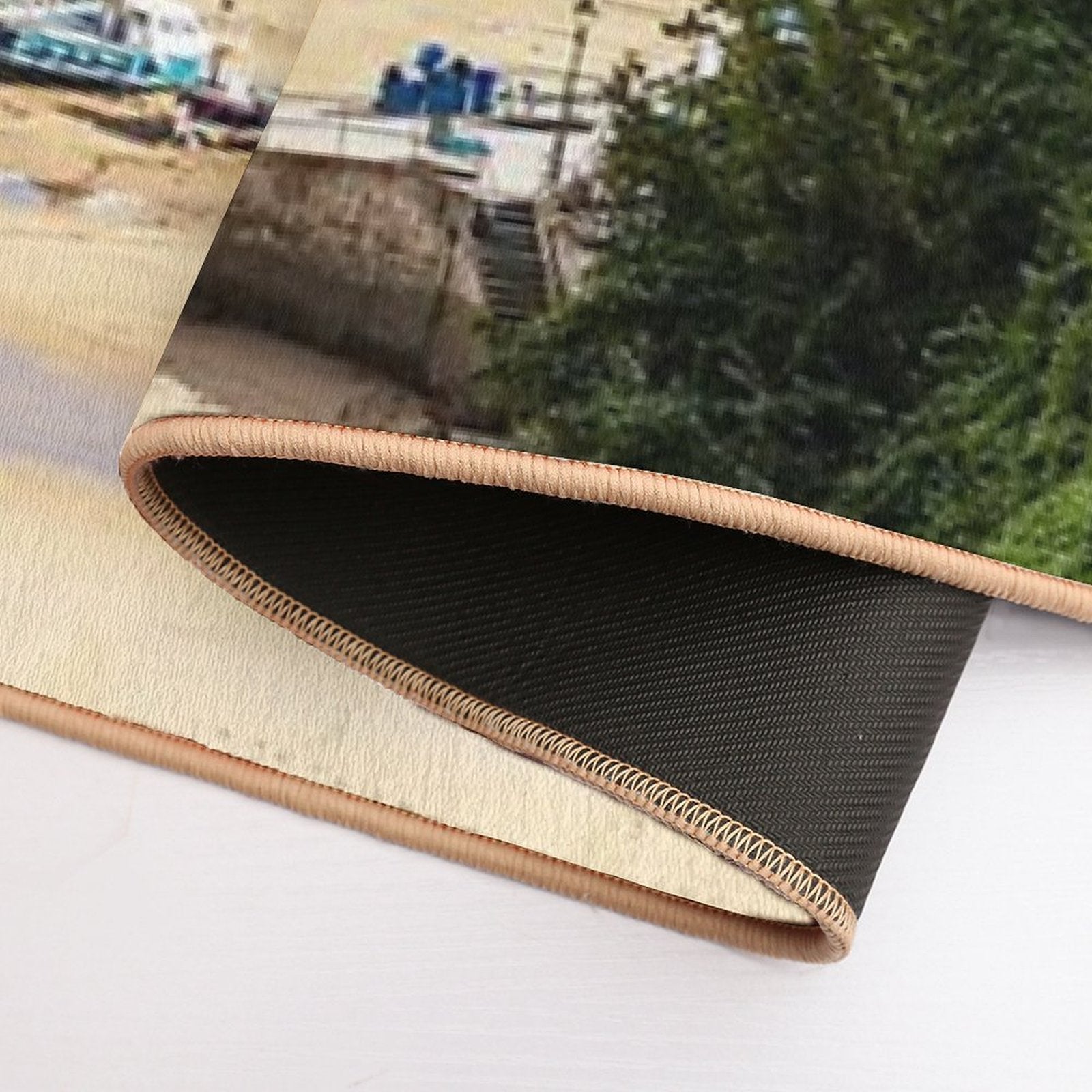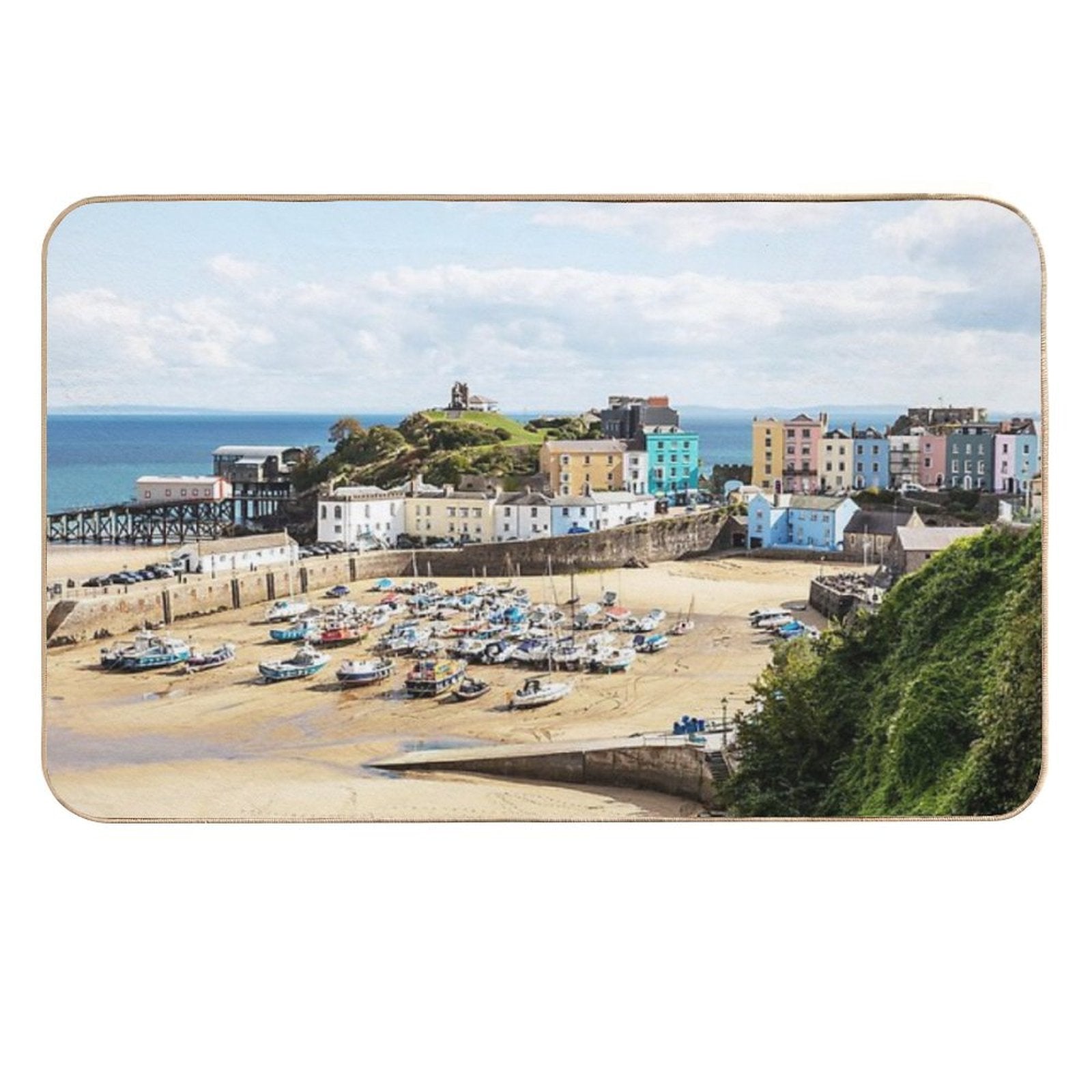 • Non-slip rubber backing grips floors securely, ideal for Pastel Houses, Tenby, Wales Mat placements on tiles, wood, or marble.