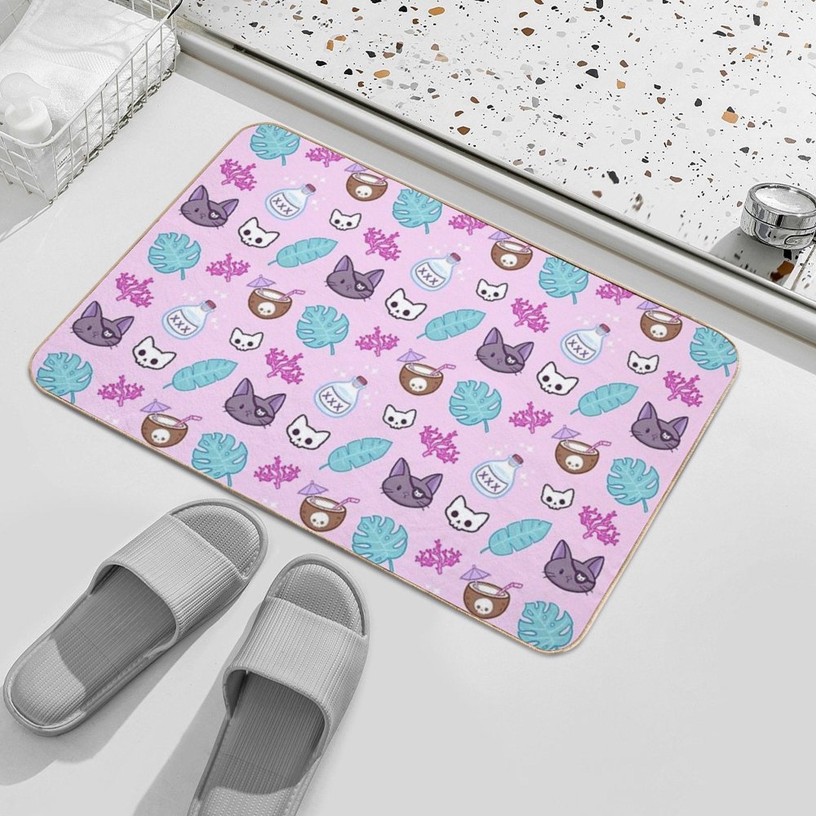 • Rapid-drying flannel soaks up water 3x faster than standard mats, preventing puddles in Pirate Cat Nikury bathrooms or poolside areas.
