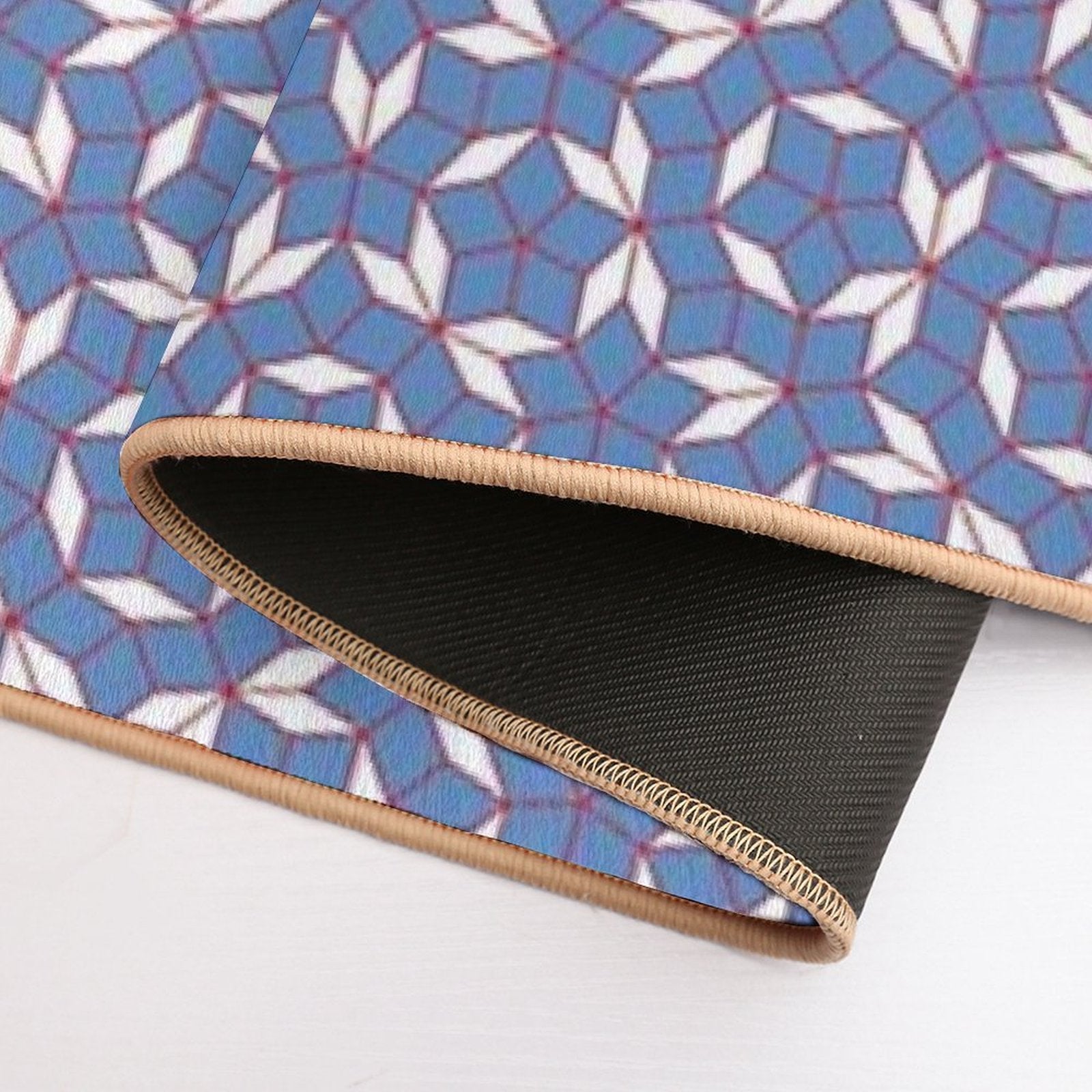 - Non-slip rubber backing grips floors securely, ideal for Red White And Blue Penrose Tiles Mat placements on tiles, wood, or marble.
