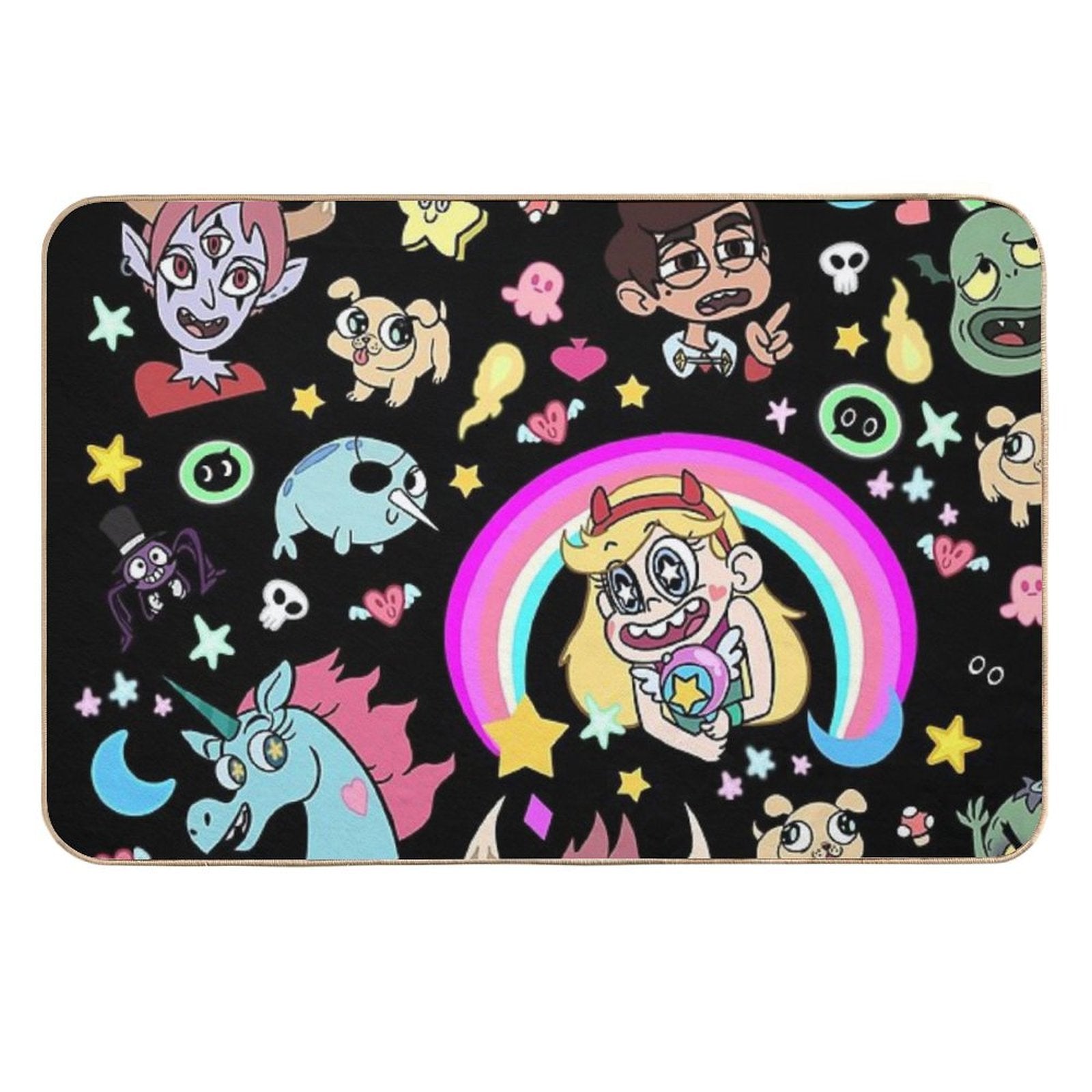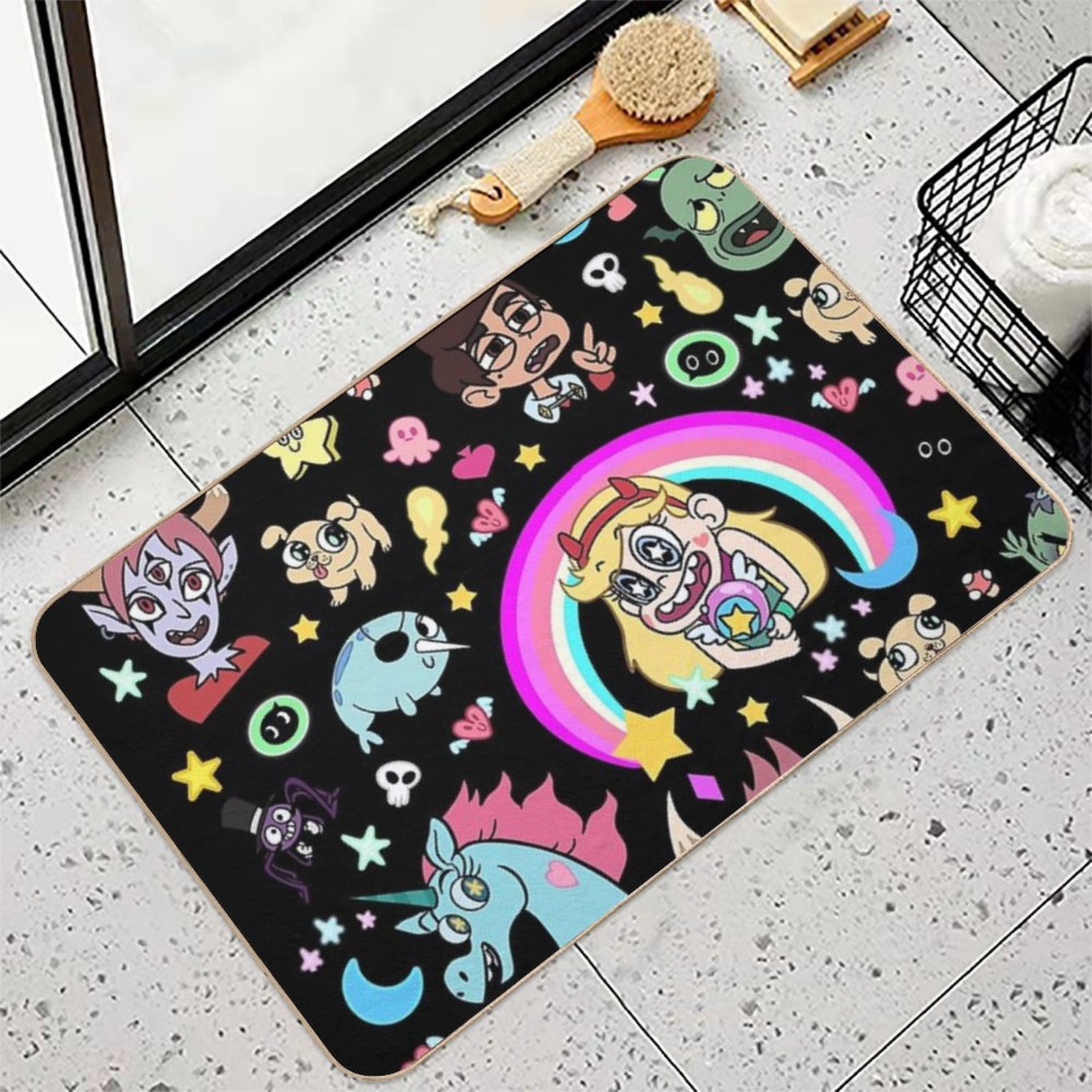• Use as a vanity rug, guest suite accent, or mudroom defender – the Star VS The Forces Of Evil! Black Mat adapts to any space.