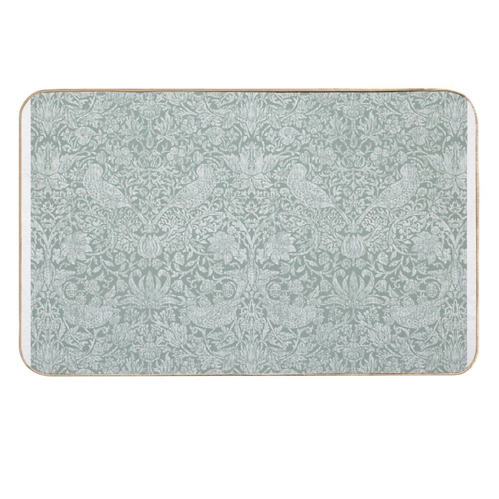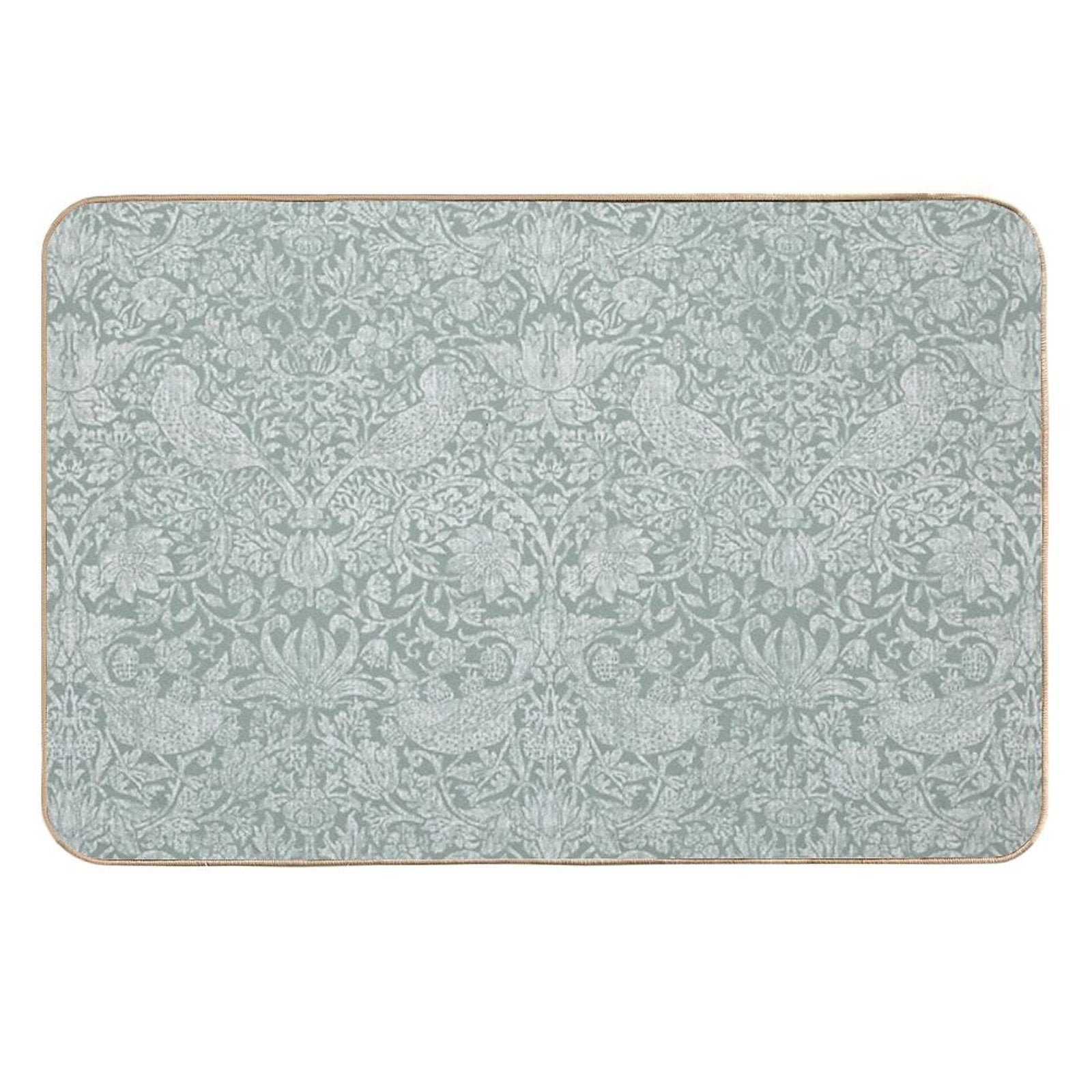 - Use as a vanity rug, guest suite accent, or mudroom defender – the Strawberry Thief Linen on Sage Green Mat adapts to any space.