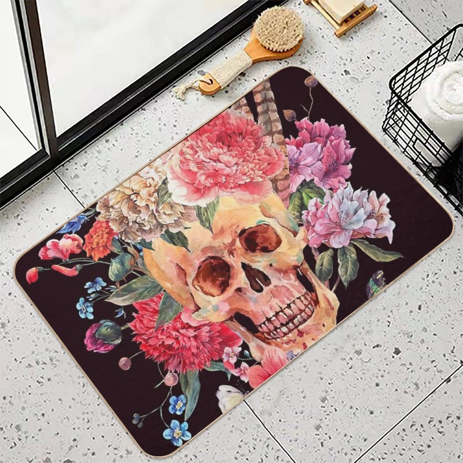 • Use as a vanity rug, guest suite accent, or mudroom defender – the Watercolor Sugar Skull And Flower Mat adapts to any space.