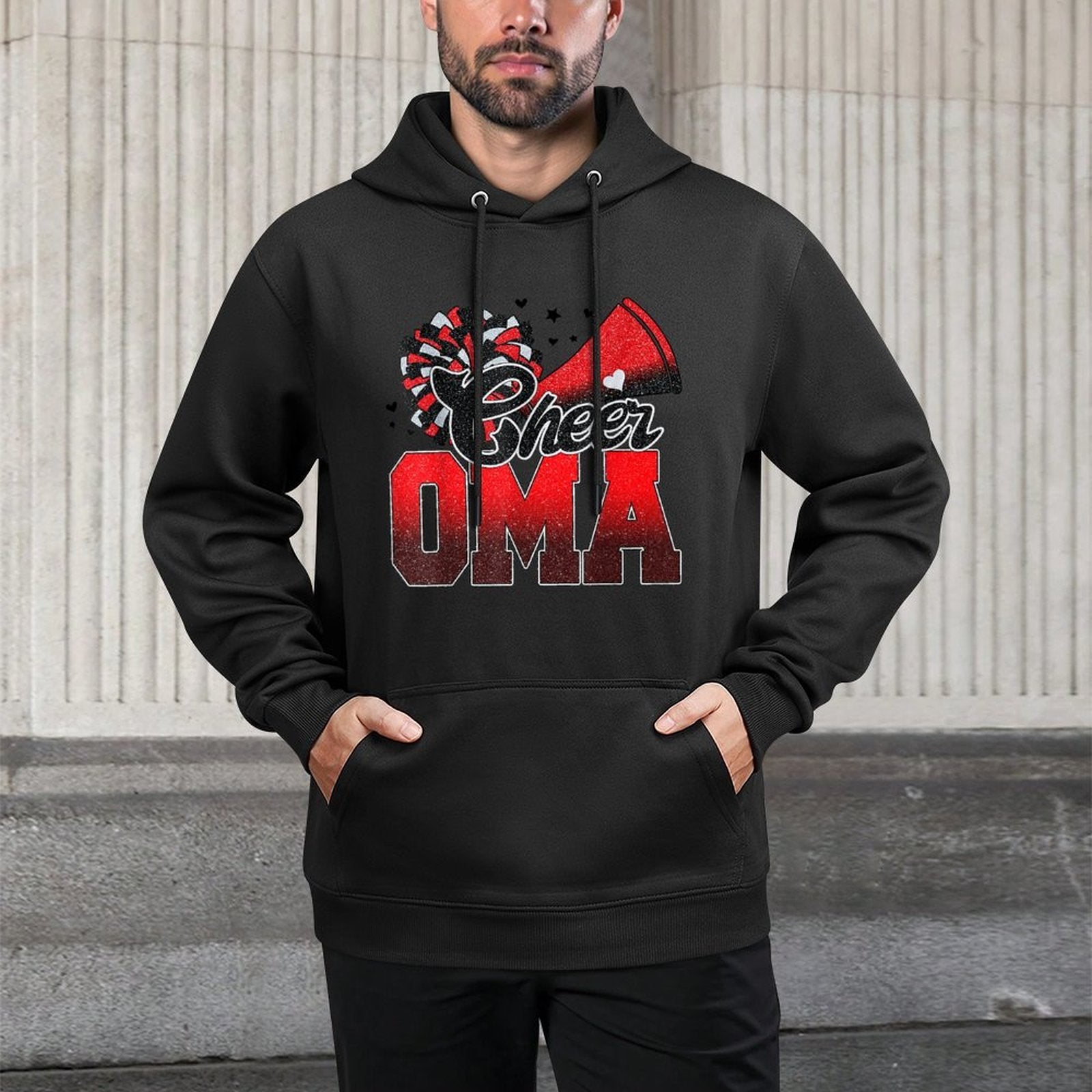 Why Choose the Cheer Oma Cheer Leader Gift Biggest Fan Black Red Pom Pom Hoodie?