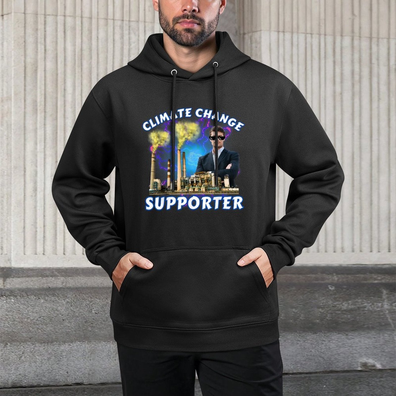 Climate Change Supporter Funny Unhinged Meme Offensive Weird Shrink-Resistant Hoodie