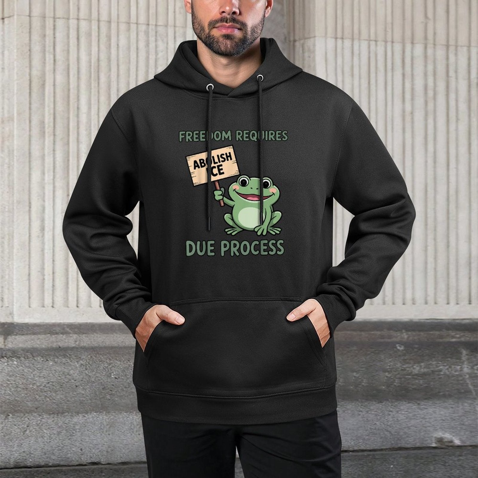 Freedom Requires Due Process Abolish Defund ICE Frog Protest Customizable Surface Hoodie