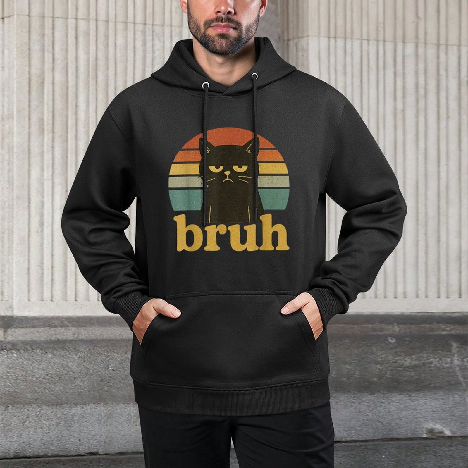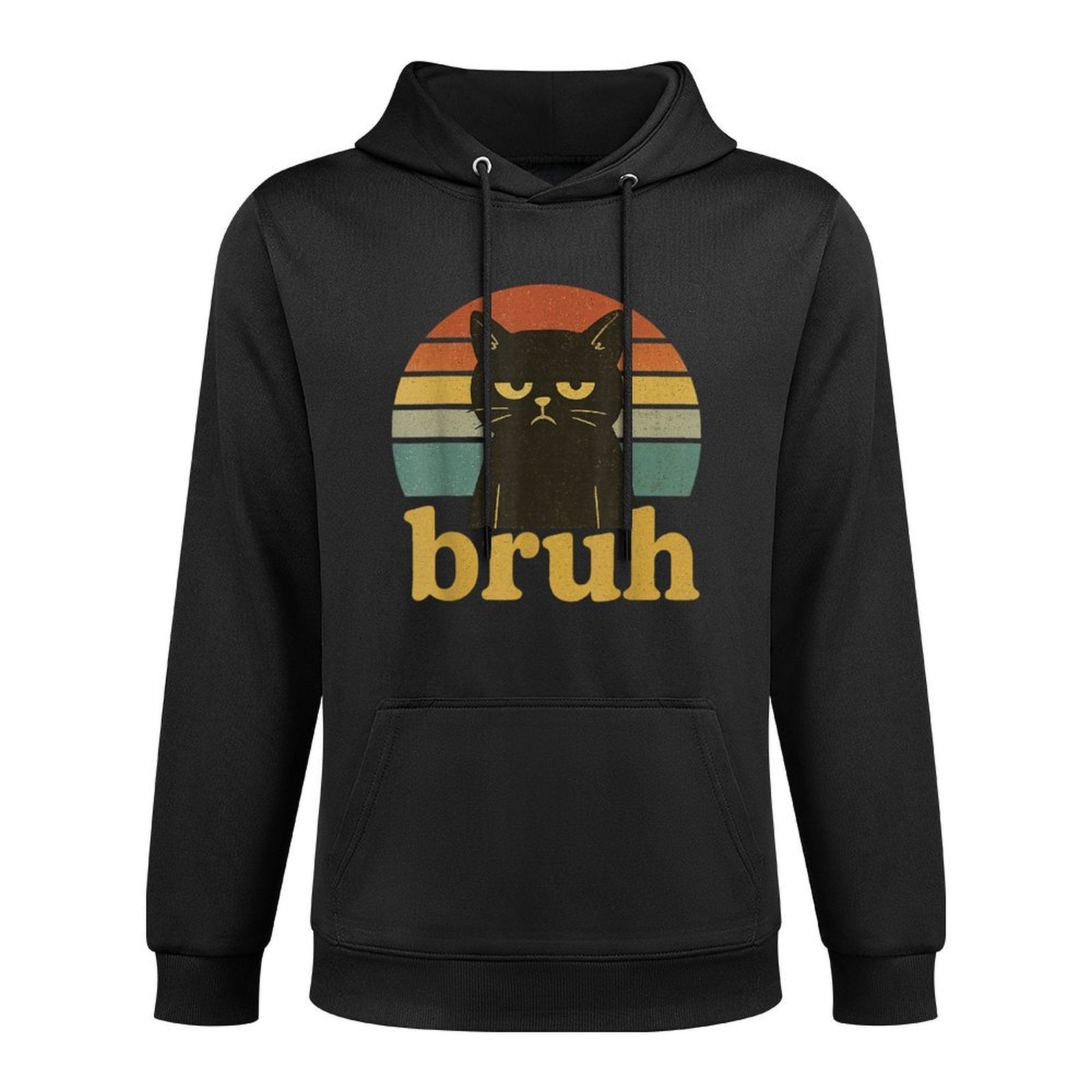 Funny Meme Saying Bruh Retro Cat Men Women Kids Customizable Surface Hoodie