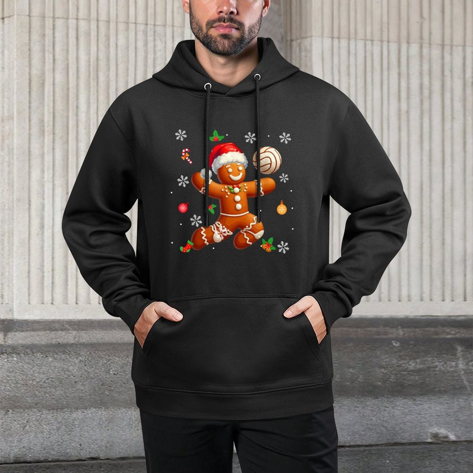 Gingerbread Playing Volleyball Christmas Player Kids Family Easy Care Hoodie