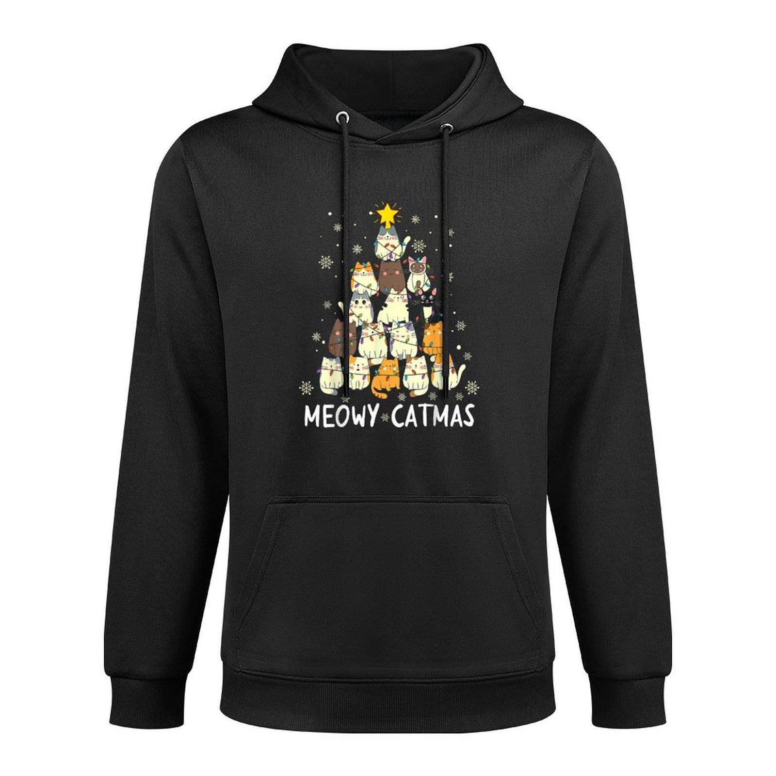 Meowy Catmas Cat Christmas Tree Xmas Girls Boys Funny Santa Machine Washable Hoodie