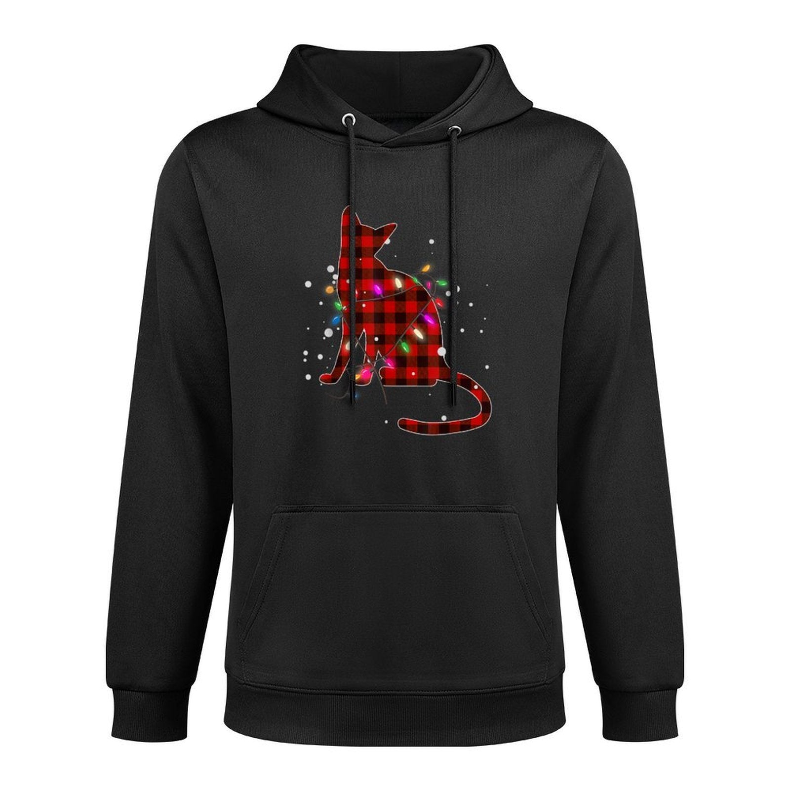 Red Buffalo Plaid Cat Christmas Pajamas Xmas Tree Lights for Men Women Kids Versatile Streetwear Hoodie