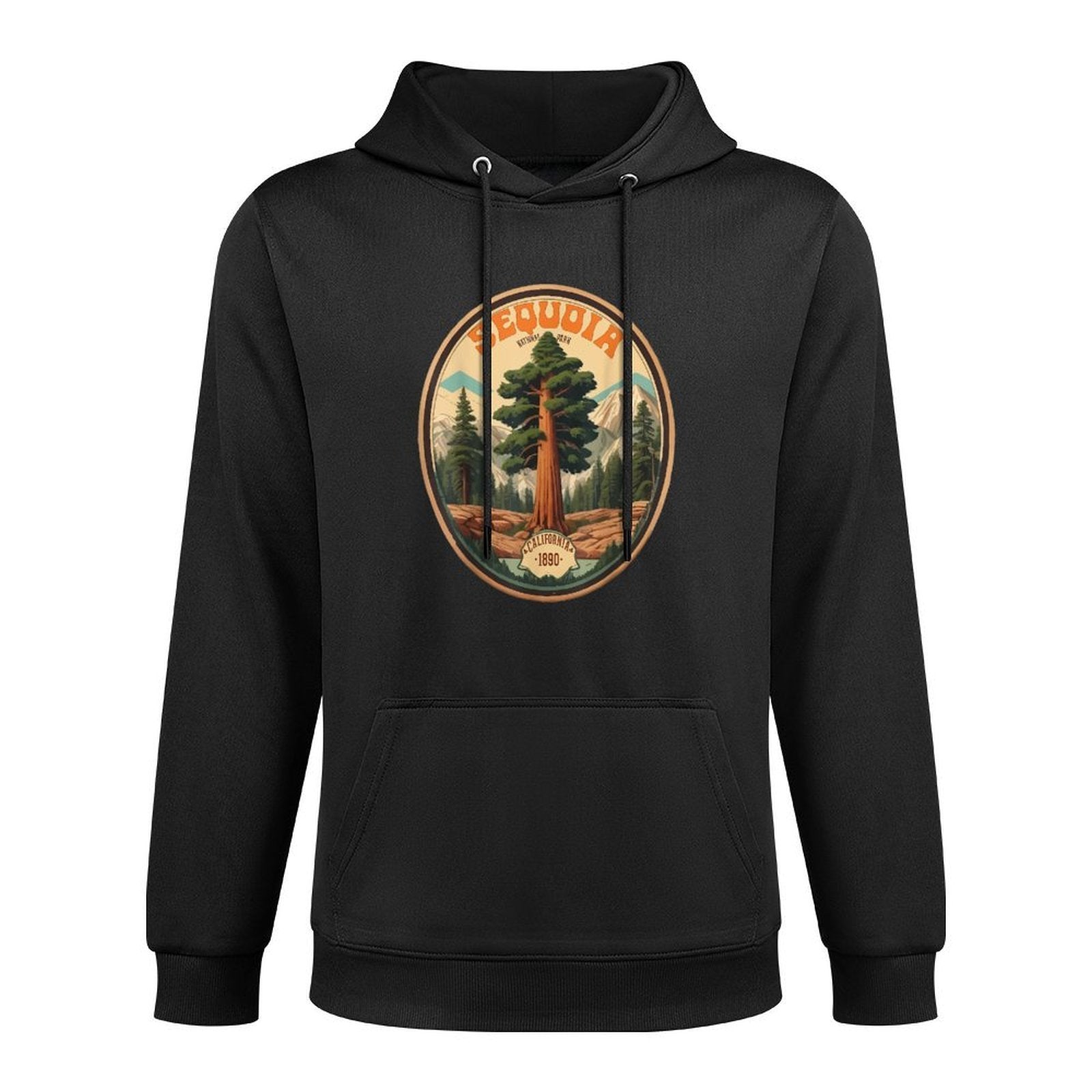 Sequoia National Park Tree Illustration Hiking Retro Badge Versatile Streetwear Hoodie
