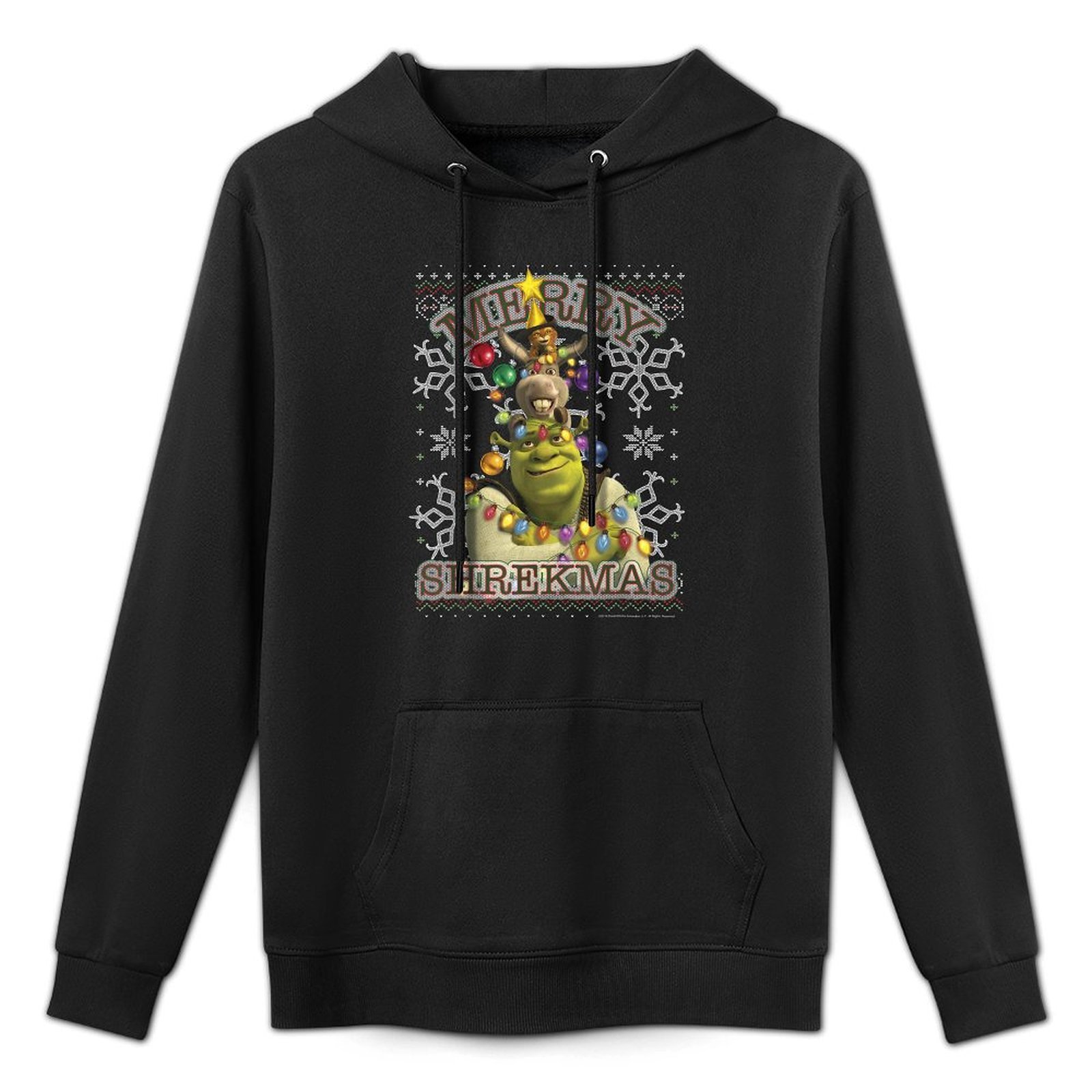 Shrek Donkey Puss Merry Shrekmas Holiday Text Poster Casual Wear Hoodie