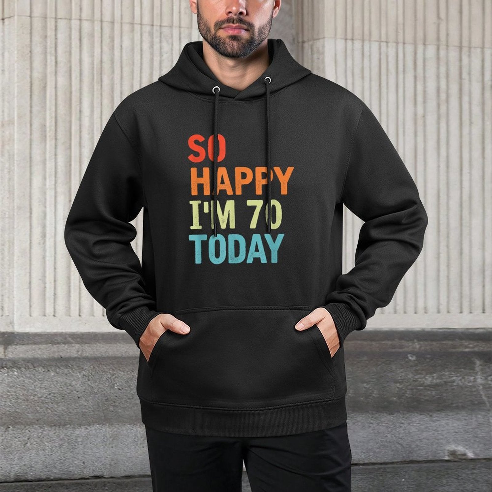 So Happy I'm 70 Today Funny 70 Years Old 70th Birthday Customizable Surface Hoodie