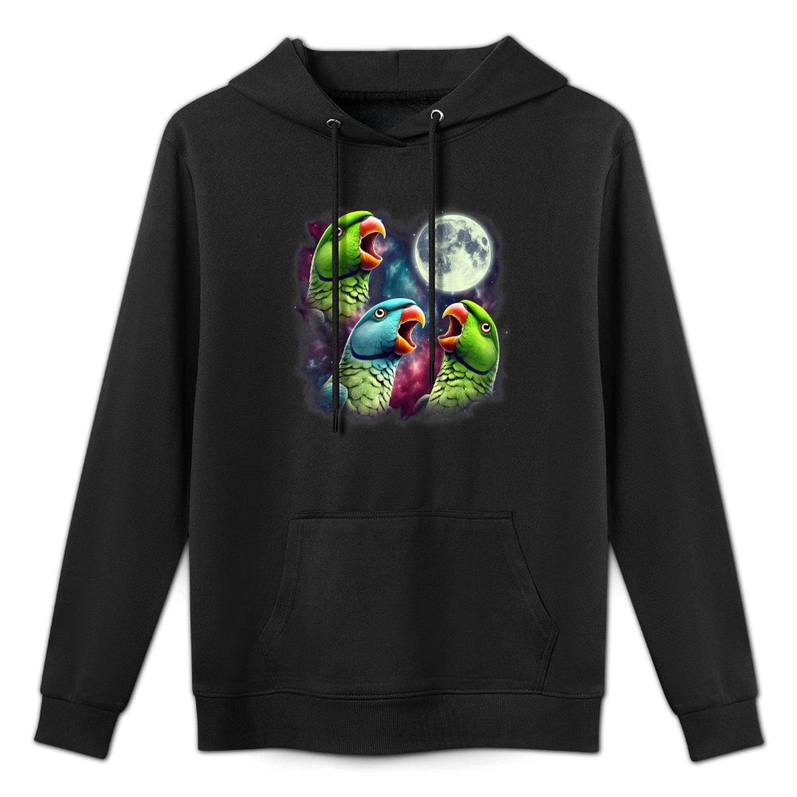 Why Choose the Three Indian Ringneck Parrots Howling at Moon Funny Meme Hoodie?