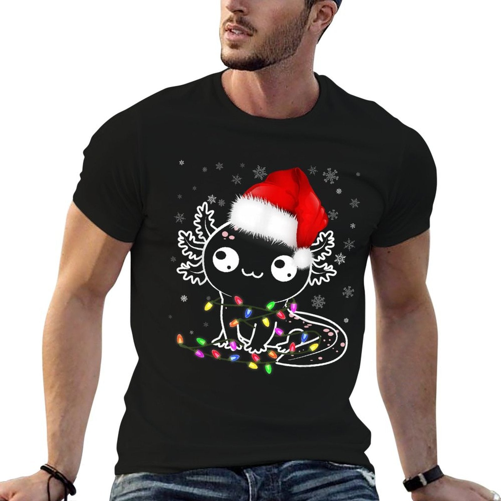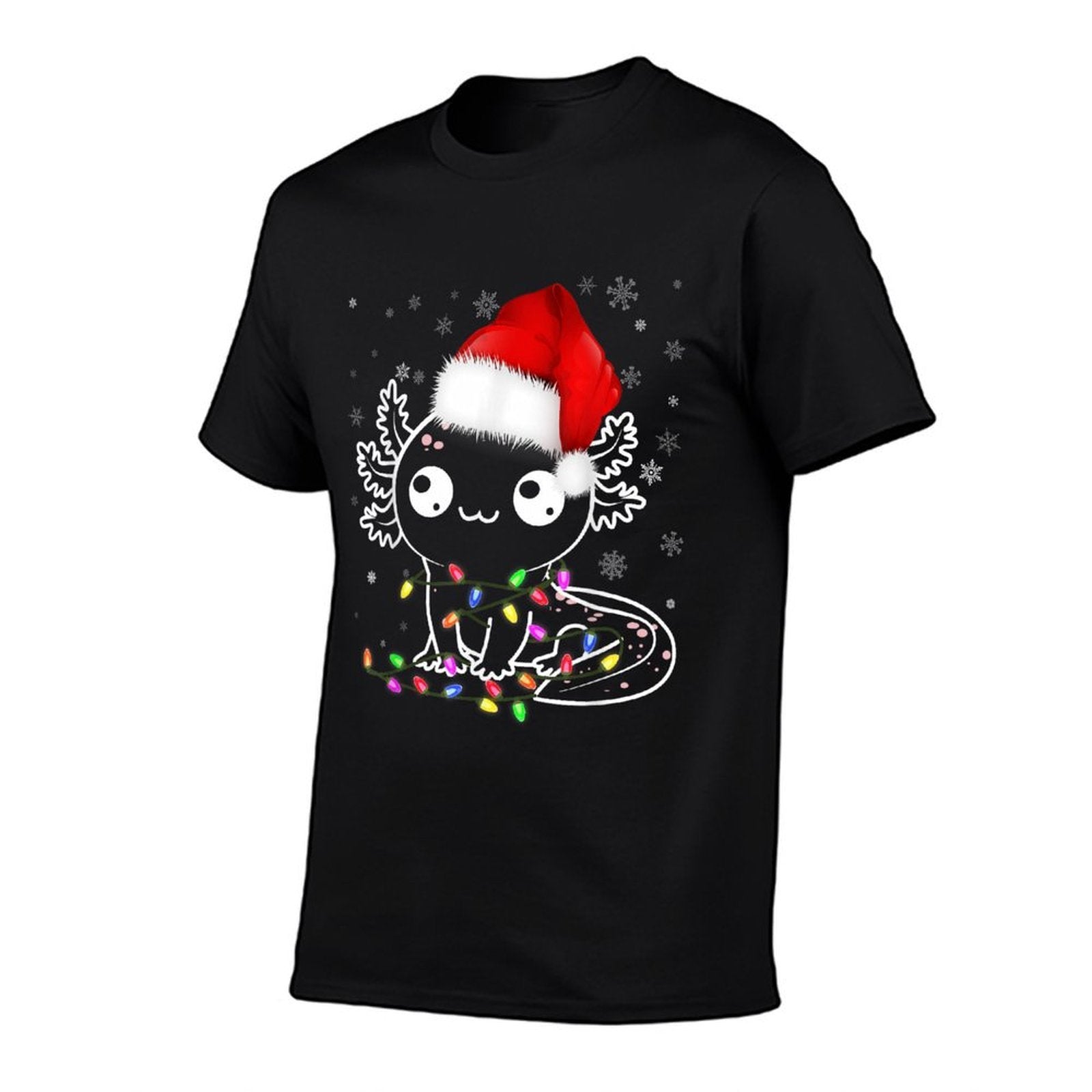 Axolotl Xmas Hat Santa Tree Cute Funny Christmas Pajama Cotton T-Shirt