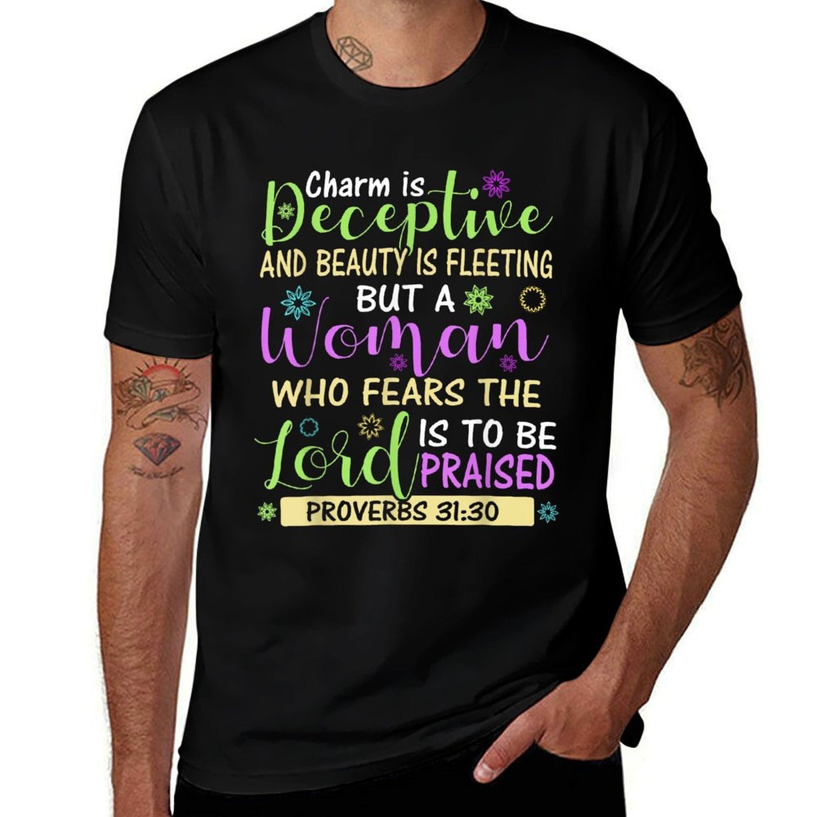 Why Choose Charm Beauty Christian Living Scripture Proverbs 3130 Bible T-Shirt?