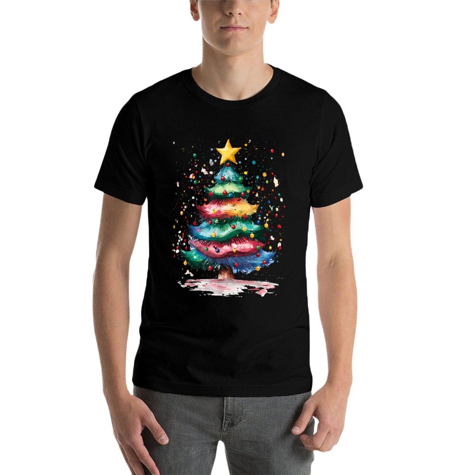 • Care Reminder: Skip soaking and bleach to extend your Christmas Tree Festive Holiday Design with Colorful tee’s lifespan.
