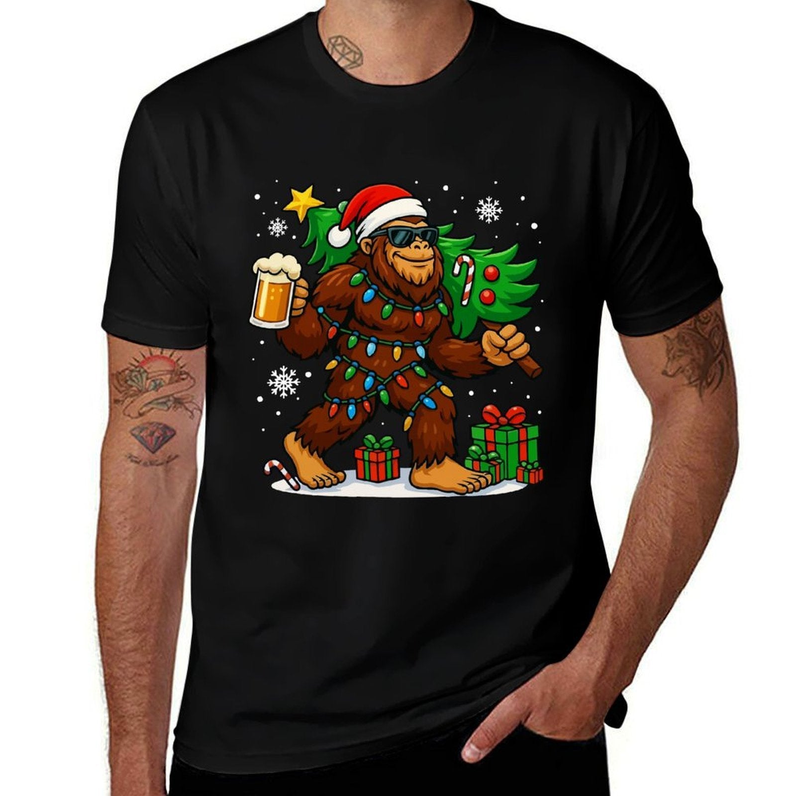 • Durable construction withstands frequent wears, ideal for active Funny Bigfoot Santa Christmas Tree Drink Beer Xmas Sasquatch lifestyles.