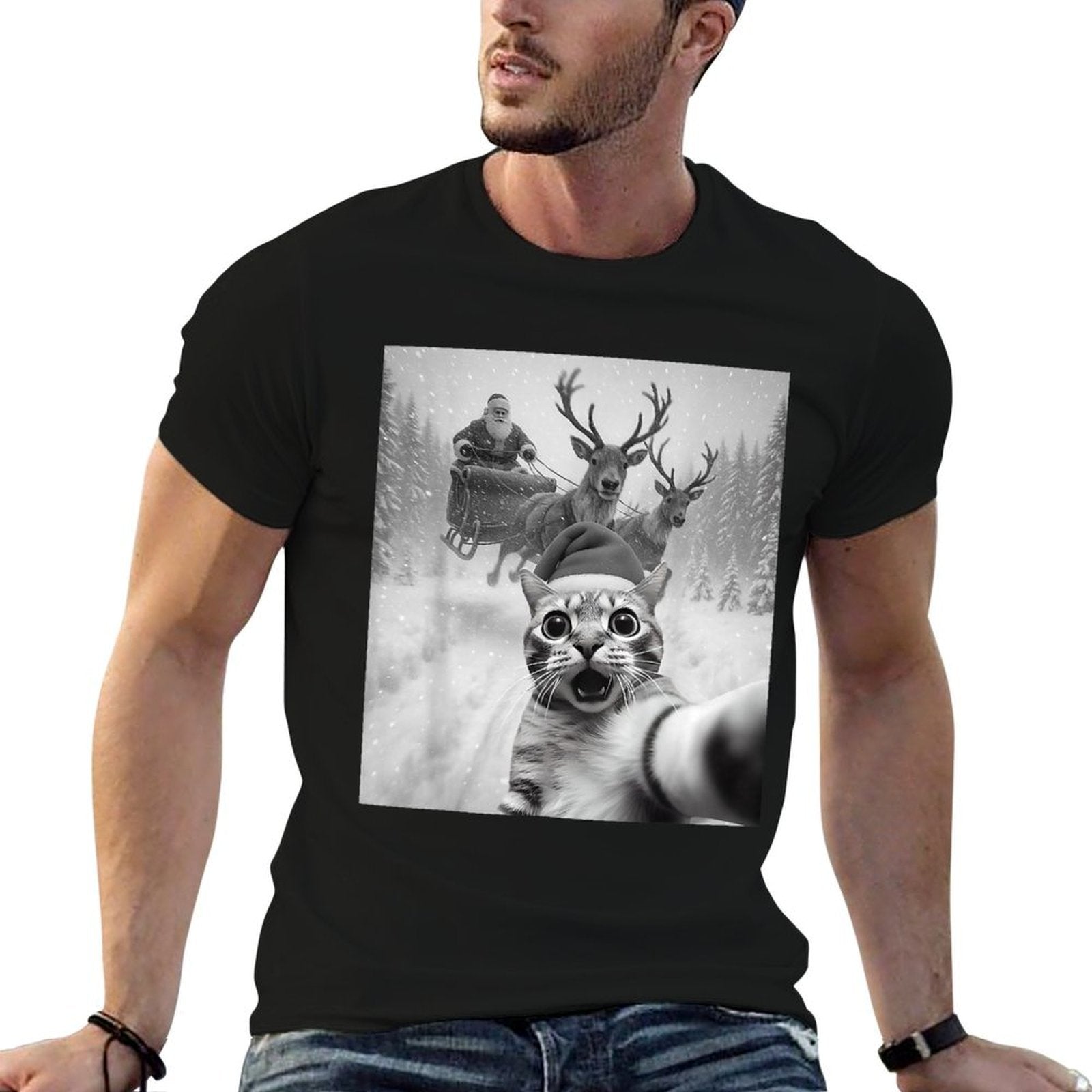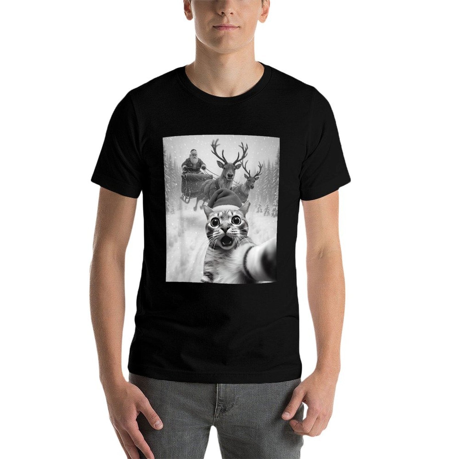 Funny Cat Selfie Santa Merry Christmas Xmas Pajamas Holiday Odor-resistant T-Shirt