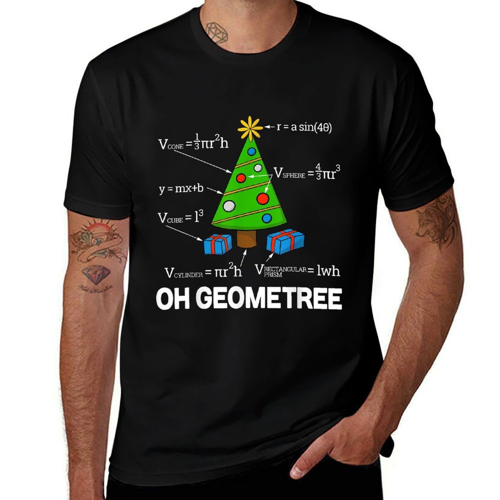 - Avoid bleach to preserve the Funny Math Geometry Christmas Tree Geometree Teacher T-shirt’s bold graphics and cotton integrity.