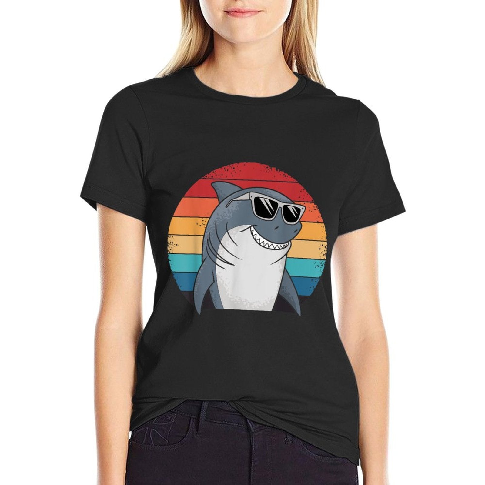 Funny Retro Cool Shark Sunglasses Ocean Beach Vibes Summer-ready Fabric T-Shirt