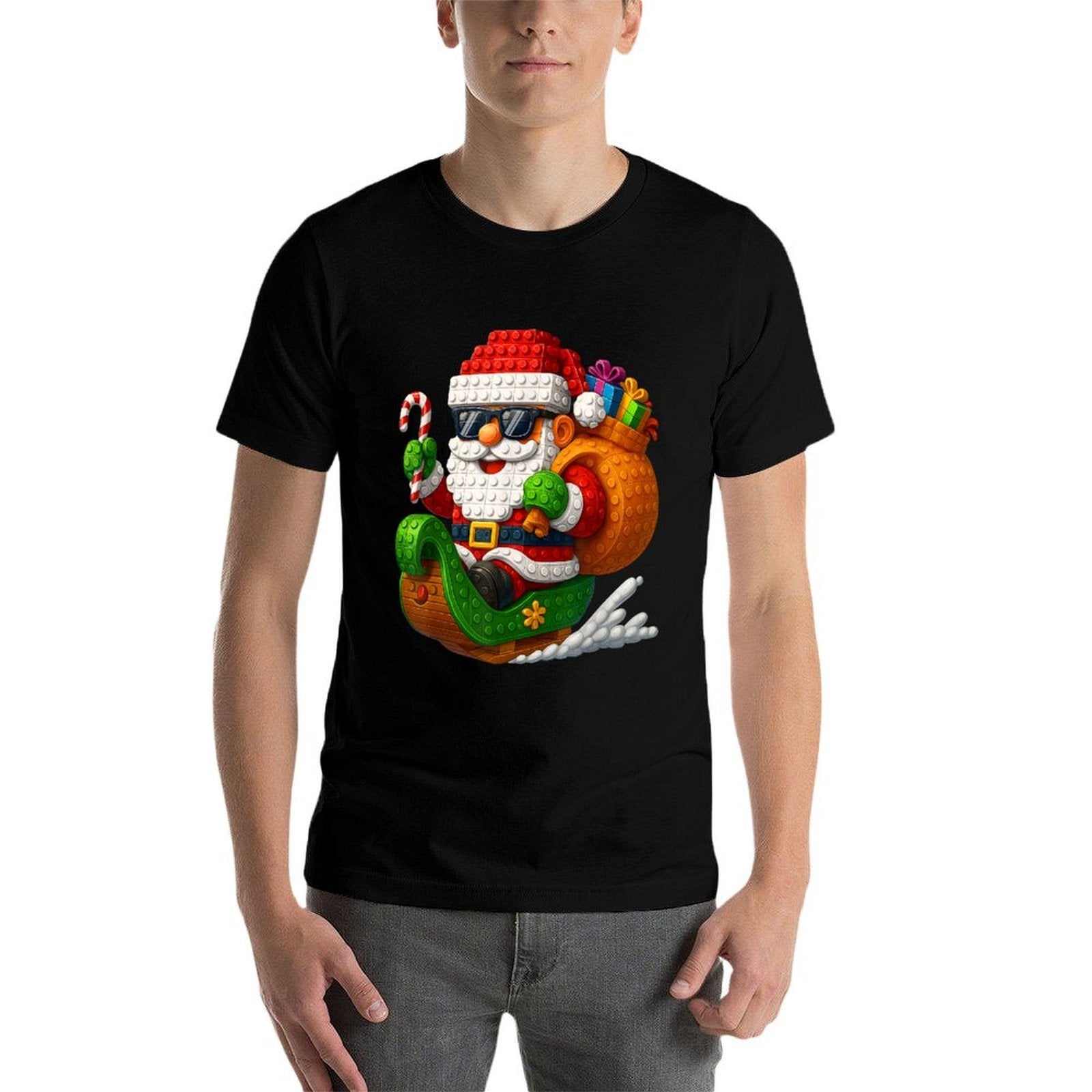 Funny Santa Buidling Brick Riding Pjs Christmas Xmas Boy High-quality Stitching T-Shirt
